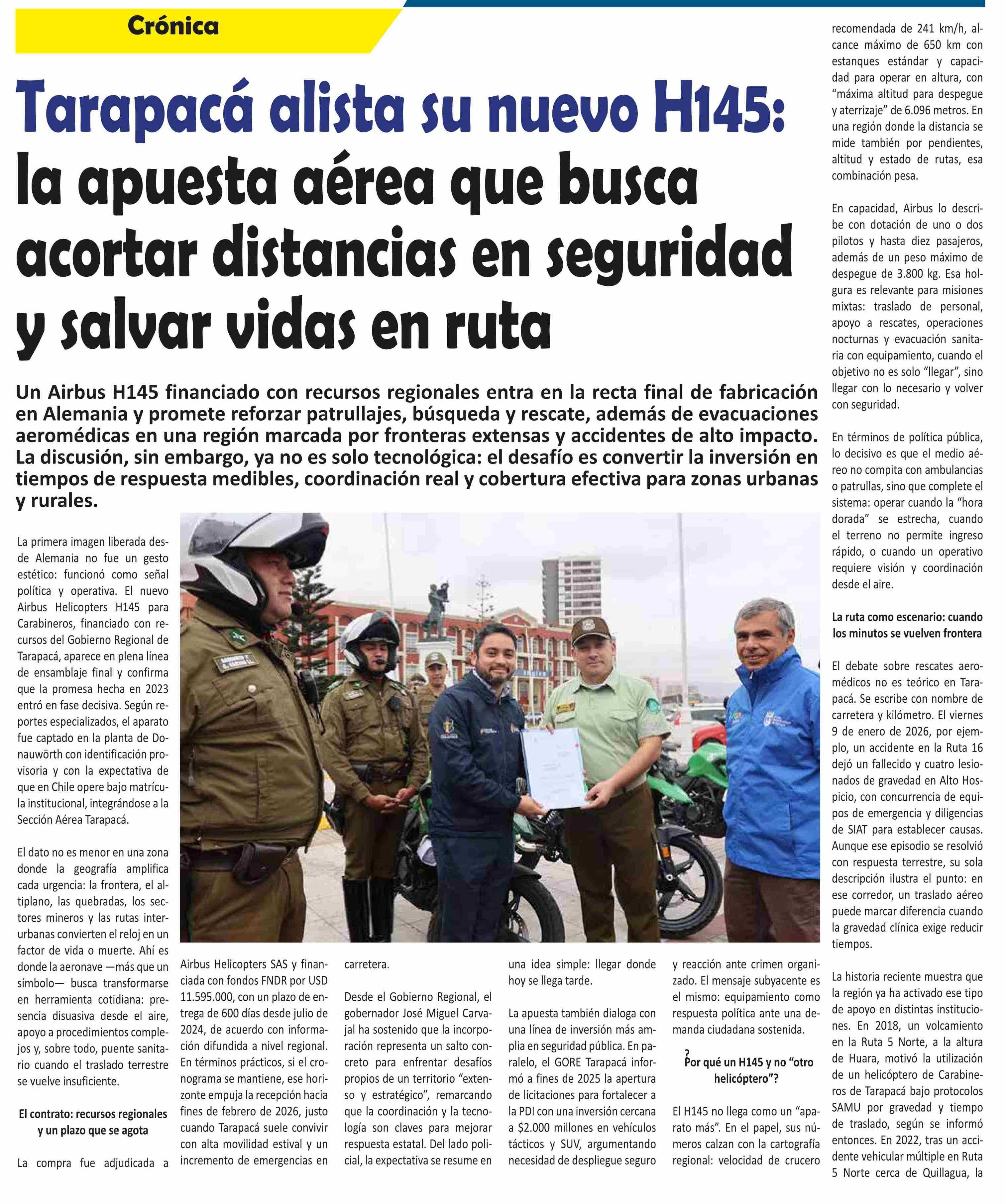 Título: Tarapacá alista su nuevo H145: la apuesta aérea que busca acortar distancias en seguridad y salvar vidas en ruta