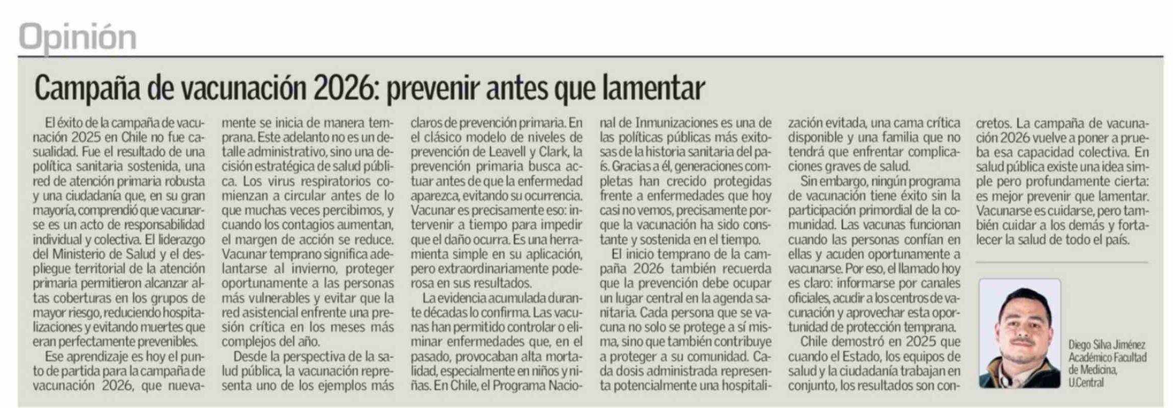 | Título: | Columnas de Opinión: Campaña de vacunación 2026: prevenir antes que lamentar |