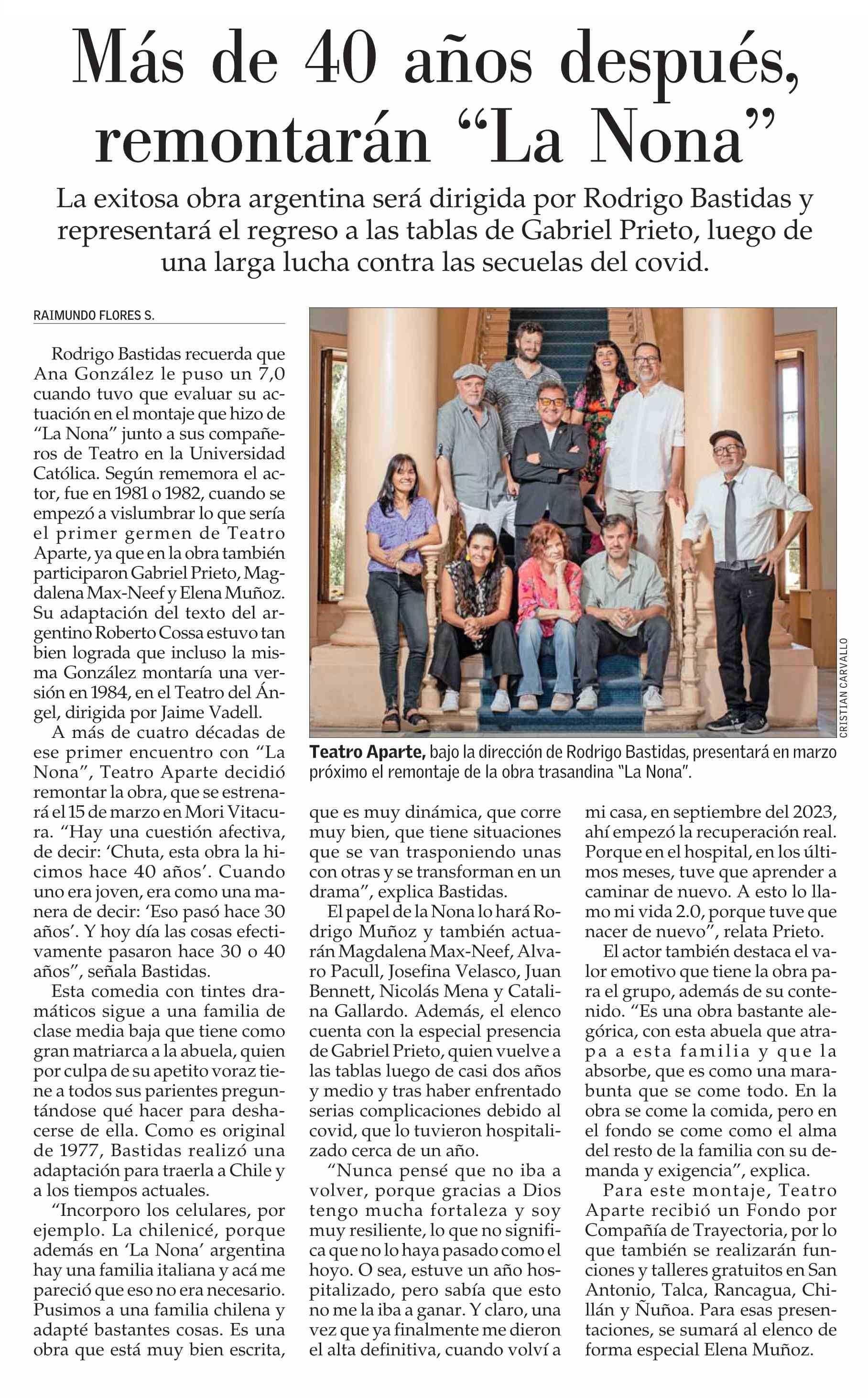 Más de 40 años después, remontarán "La Nona" 19-01-2025 El Mercurio |
