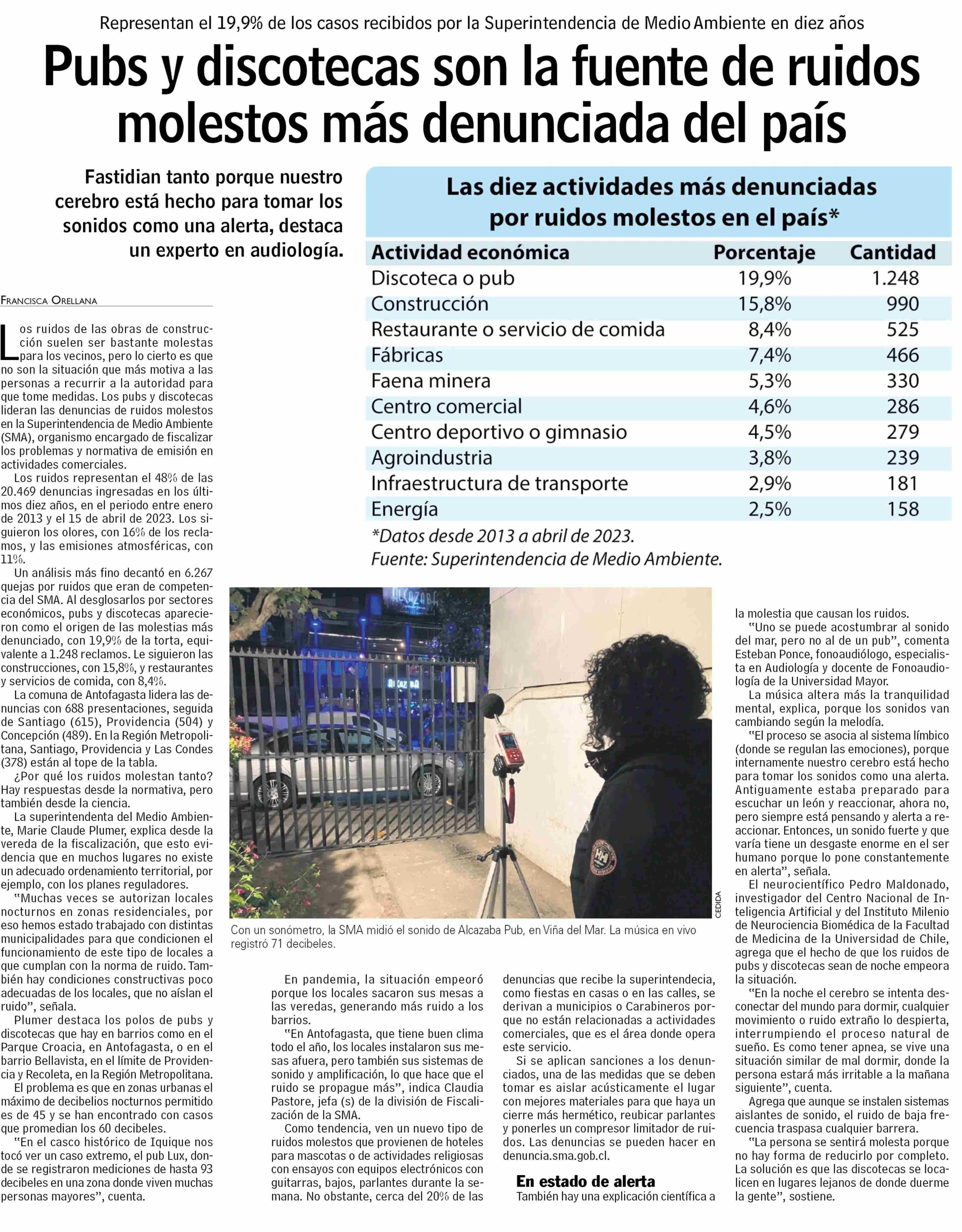 Pubs y discotecas son la fuente de ruidos molestos más denunciada del país 28-04-2023 Las Últimas Noticias |