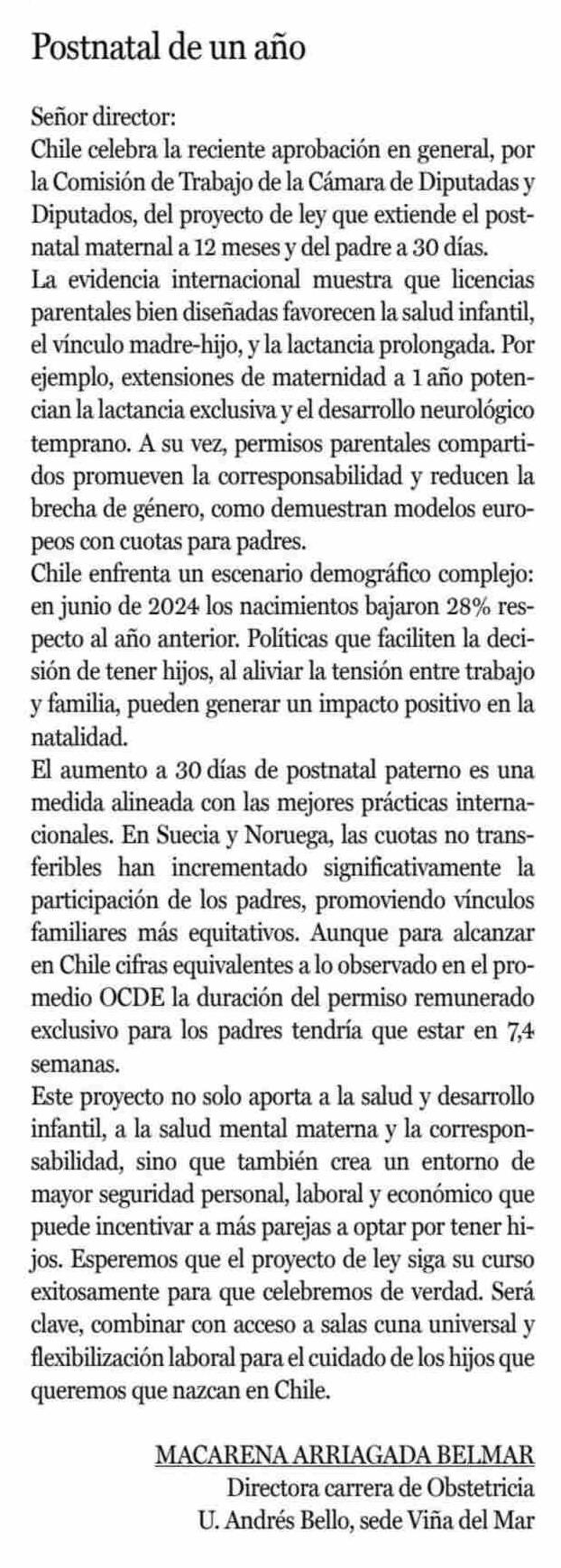 CARTAS: Postnatal de un año 13-06-2025 La Prensa de Curicó |