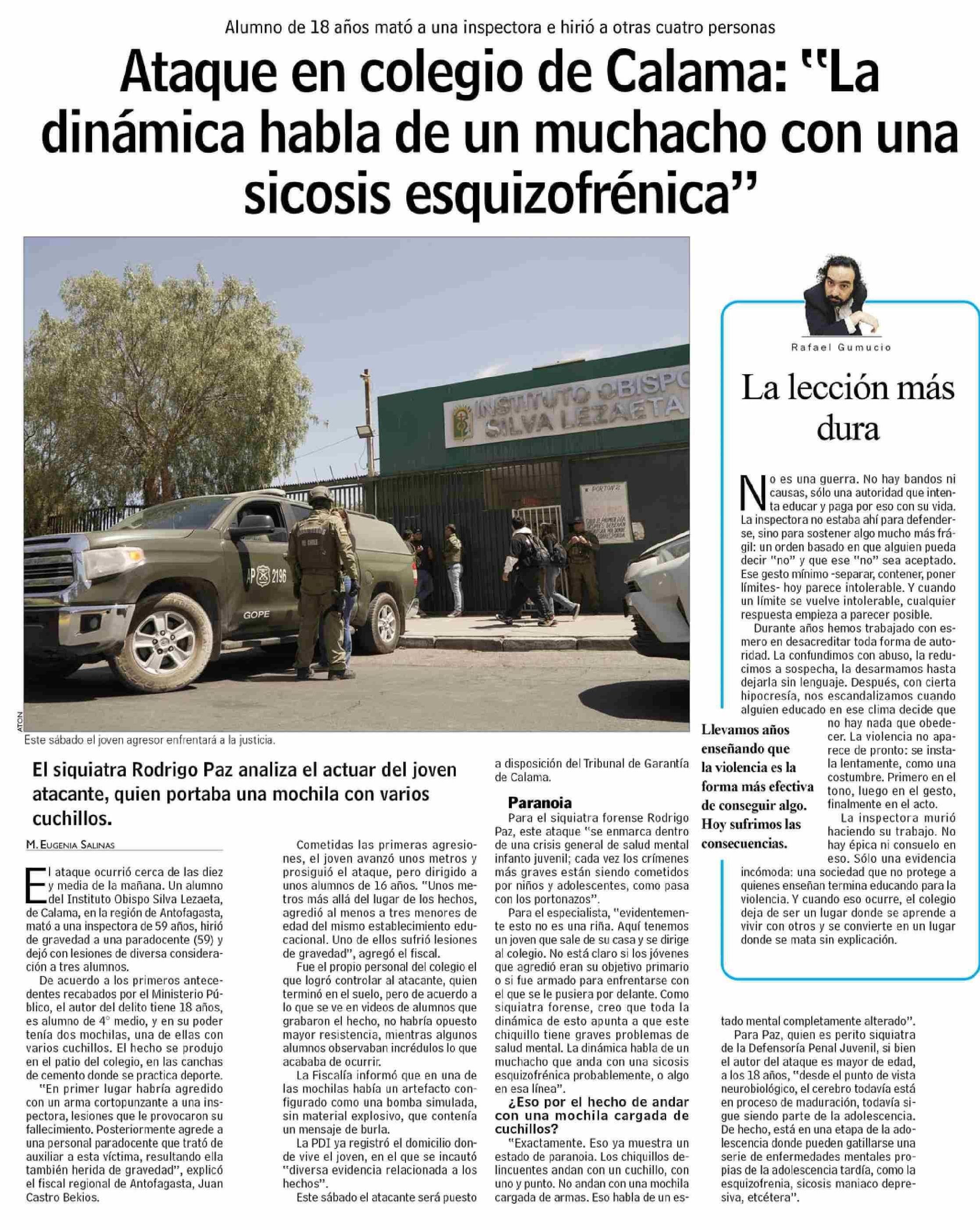 Título: Ataque en colegio de Calama: "La dinámica habla de un muchacho con una sicosis esquizofrénica"