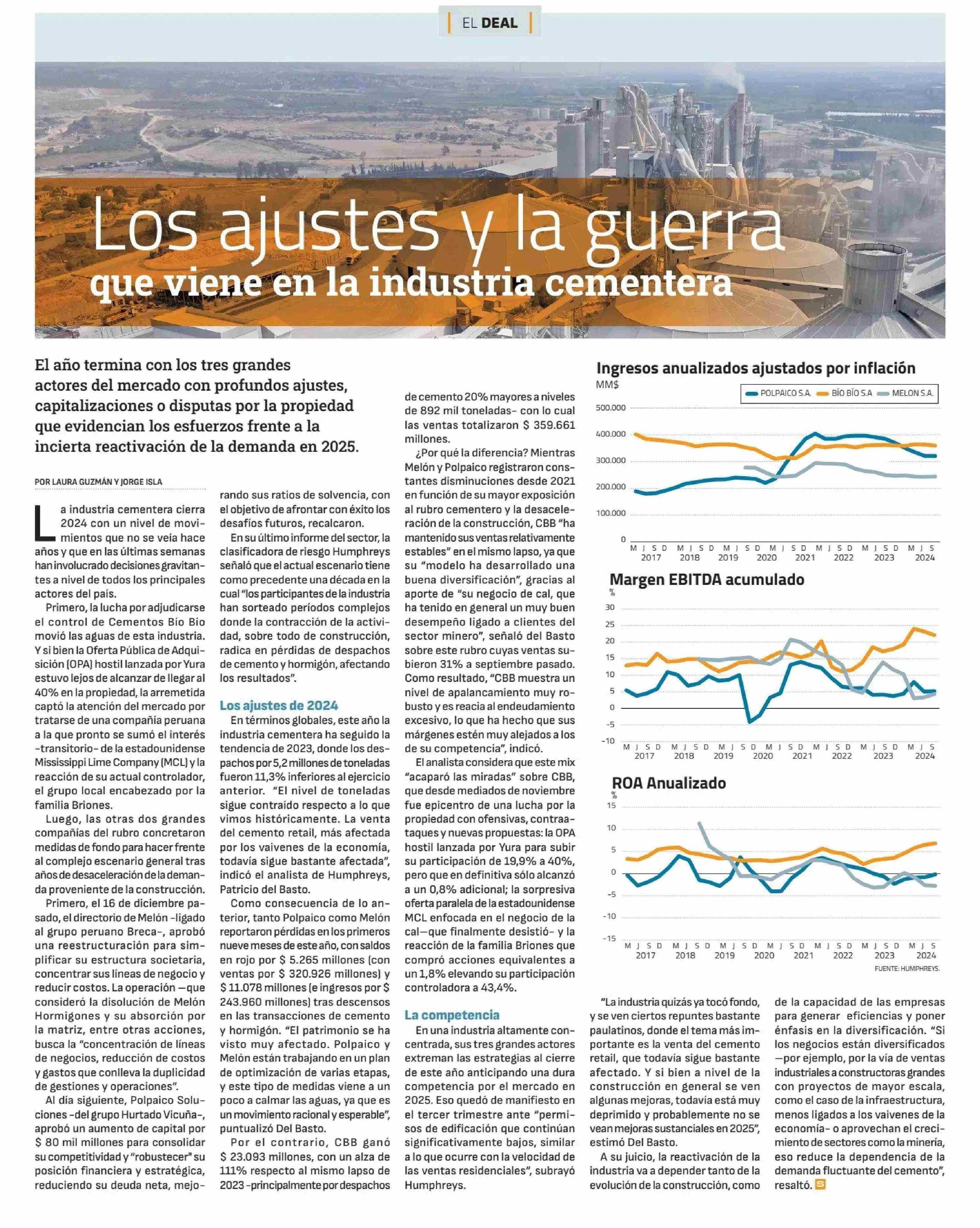 Los ajustes y la guerra que viene en la industria cementera 28-12-2024 Diario Financiero |