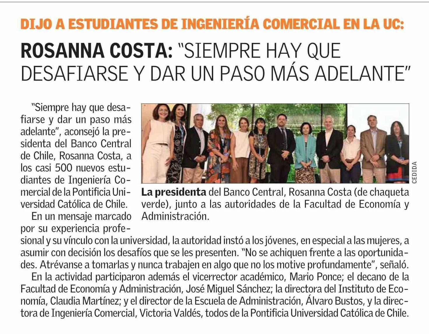 ROSANNA COSTA: "SIEMPRE HAY QUE DESAFIARSE Y DAR UN PASO MÁS ADELANTE" 04-03-2026 El Mercurio |