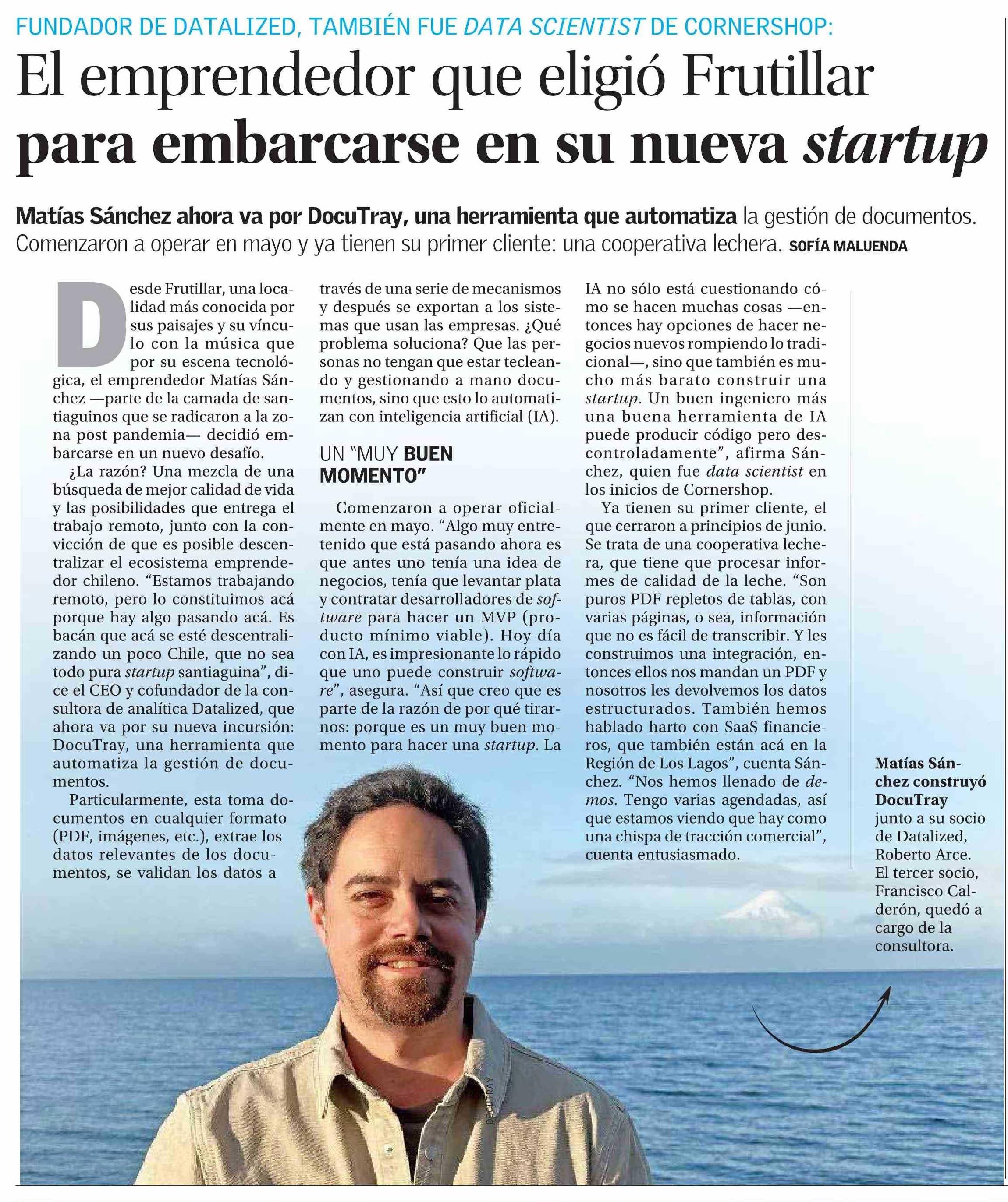 El emprendedor que eligió Frutillar para embarcarse en su nueva startup 26-06-2025 El Mercurio |
