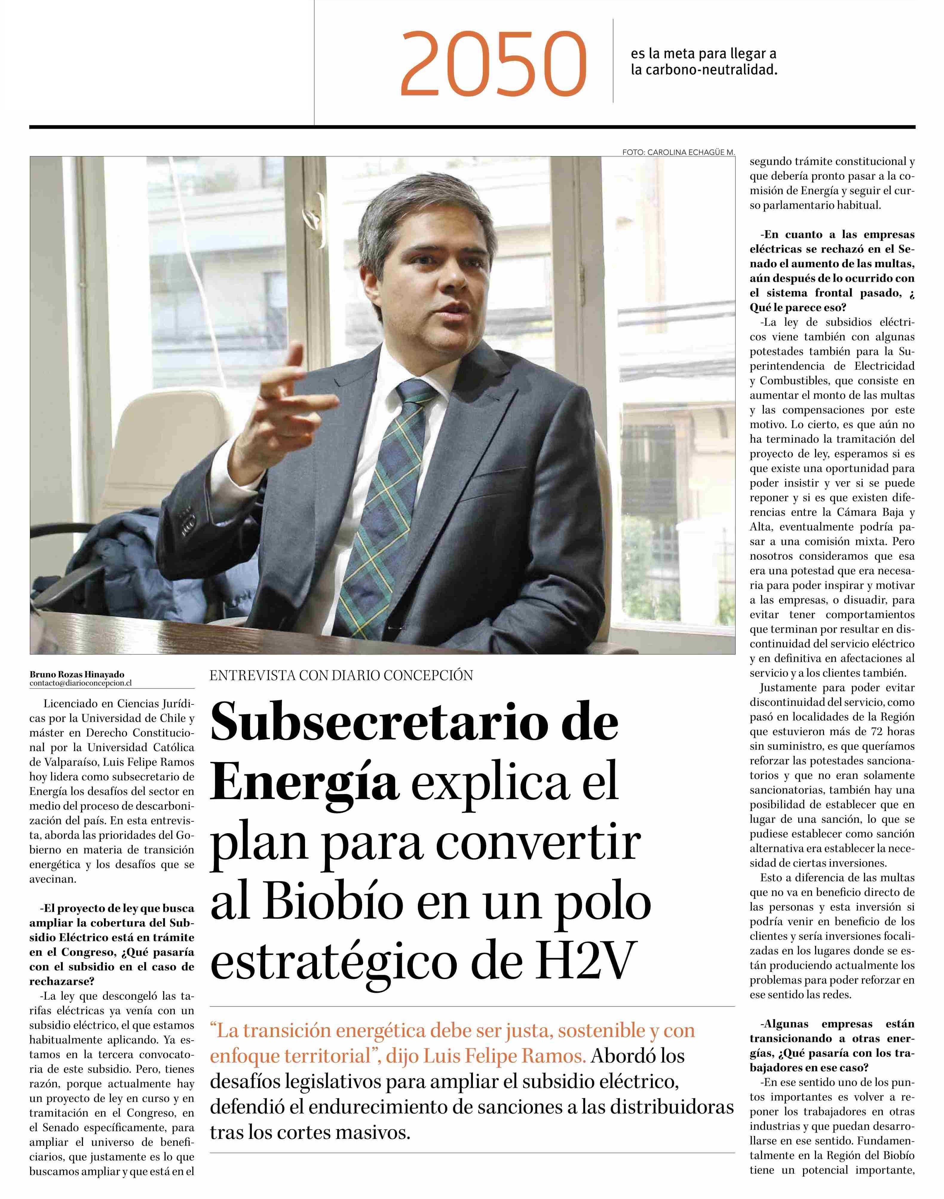 Subsecretario de Energía explica el plan para convertir al Biobío en un polo estratégico de H2V 06-07-2025 Diario Concepción |