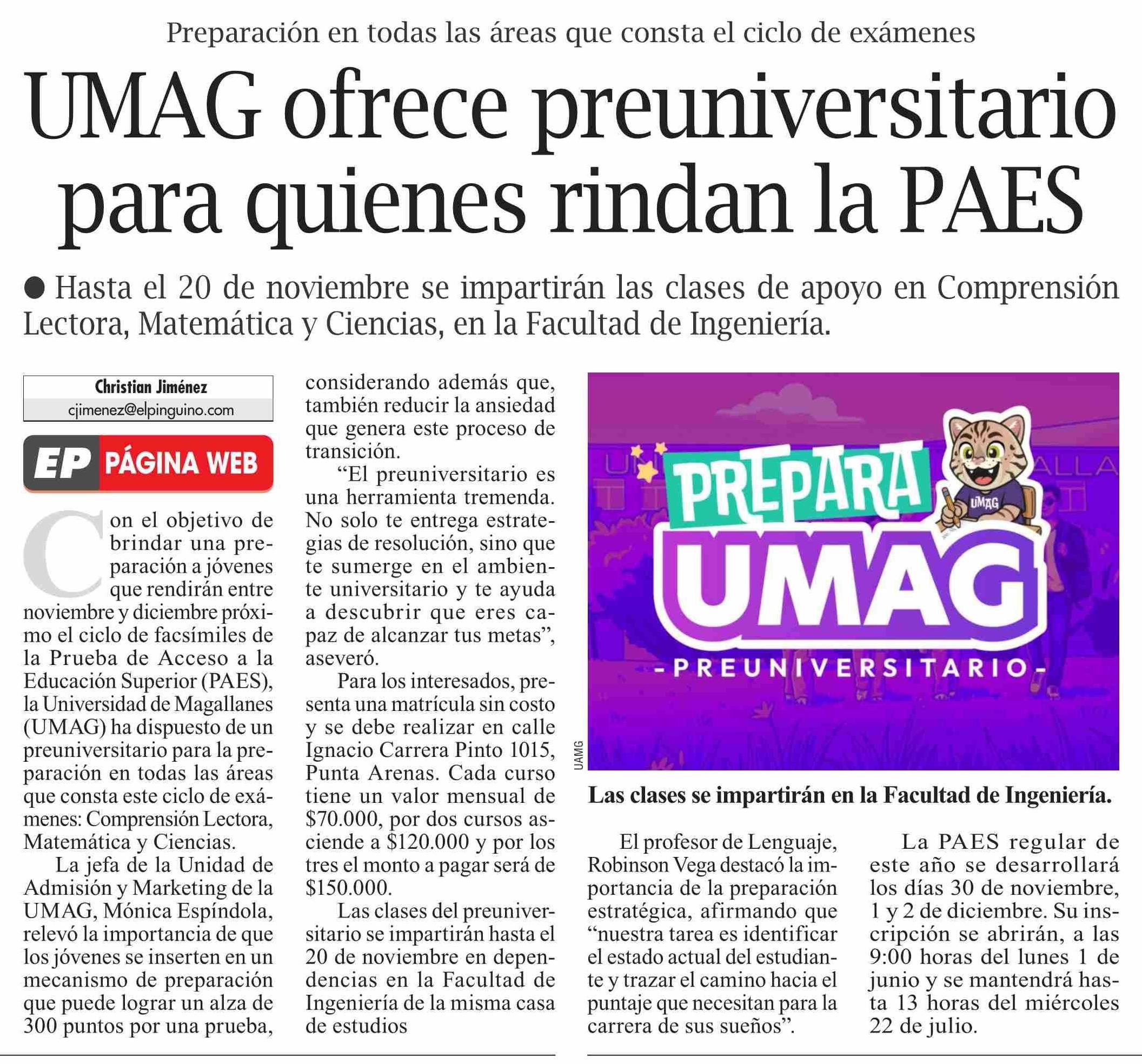 UMAG ofrece preuniversitario para quienes rindan la PAES 28-04-2026 El Pingüino |