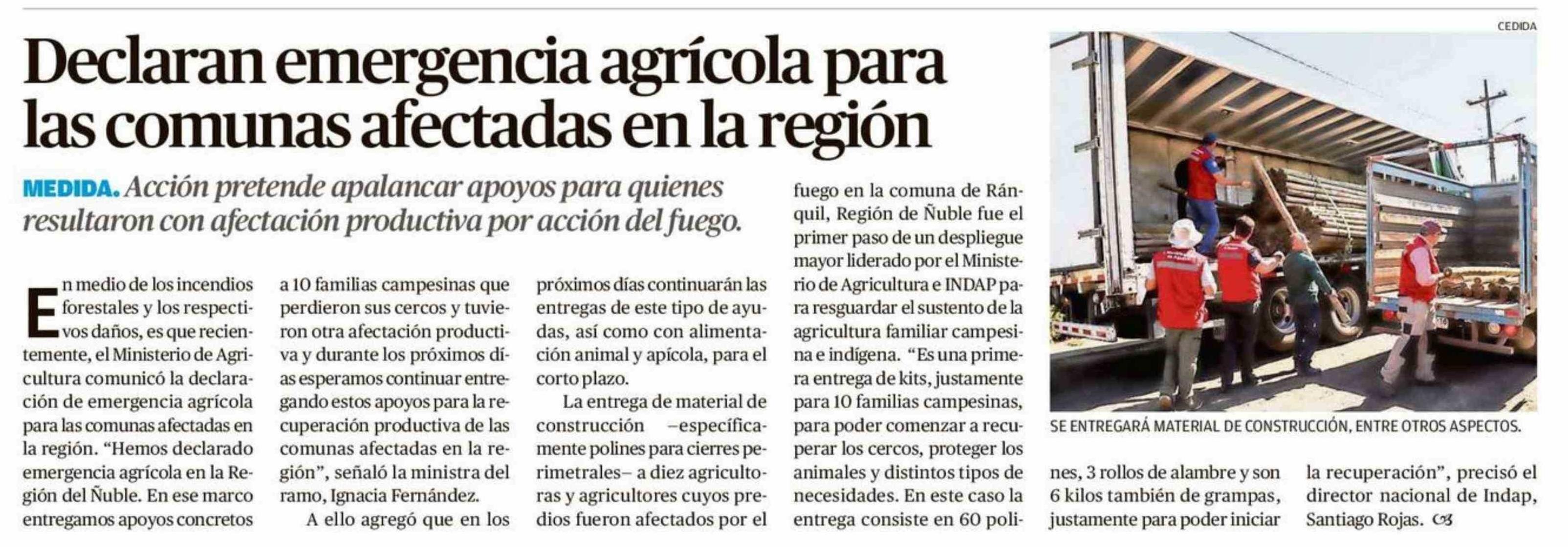 Título: Declaran emergencia agrícola para las comunas afectadas en la región