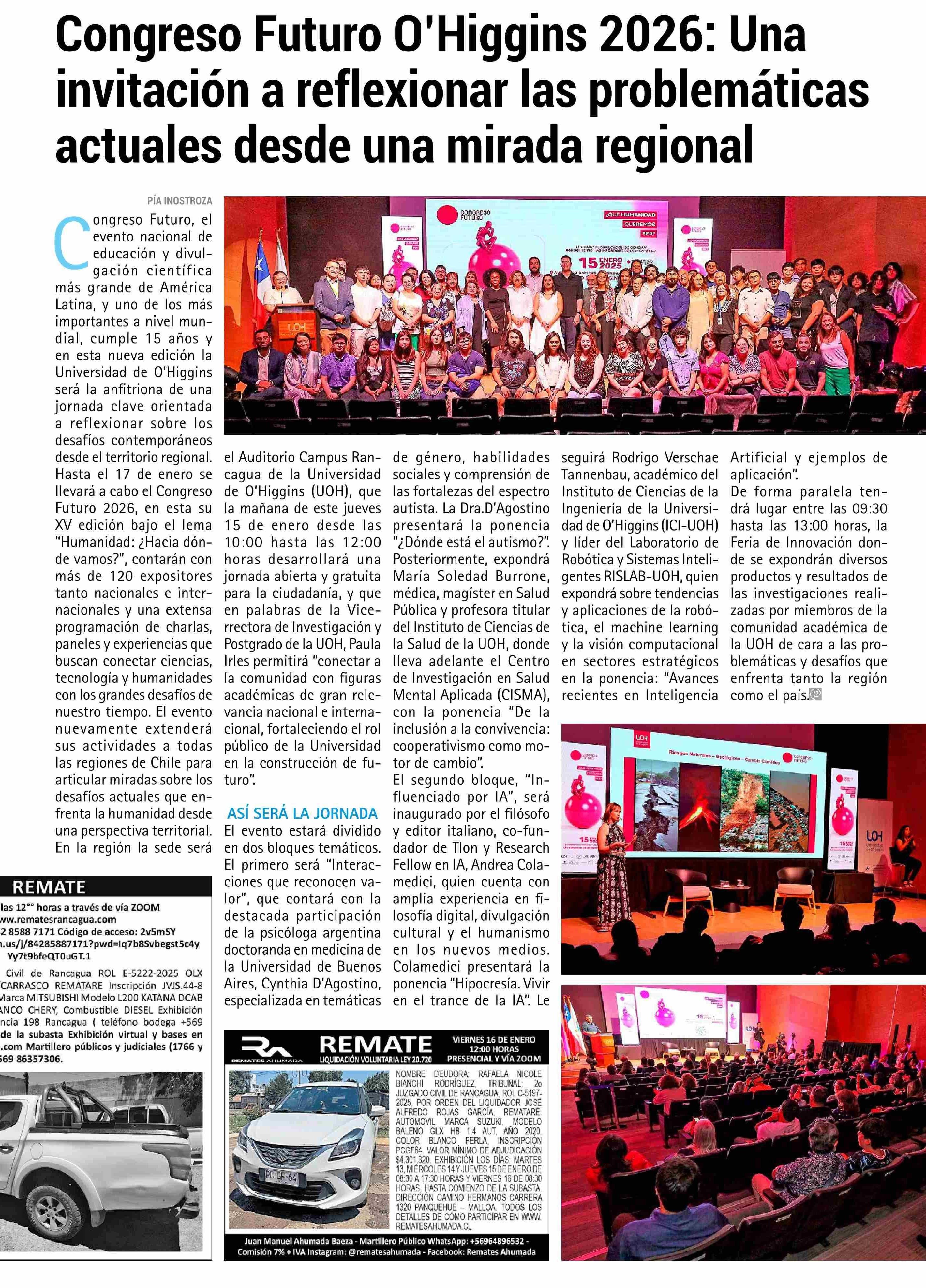 Título: Congreso Futuro O'Higgins 2026: Una invitación a reflexionar las problemáticas actuales desde una mirada regional