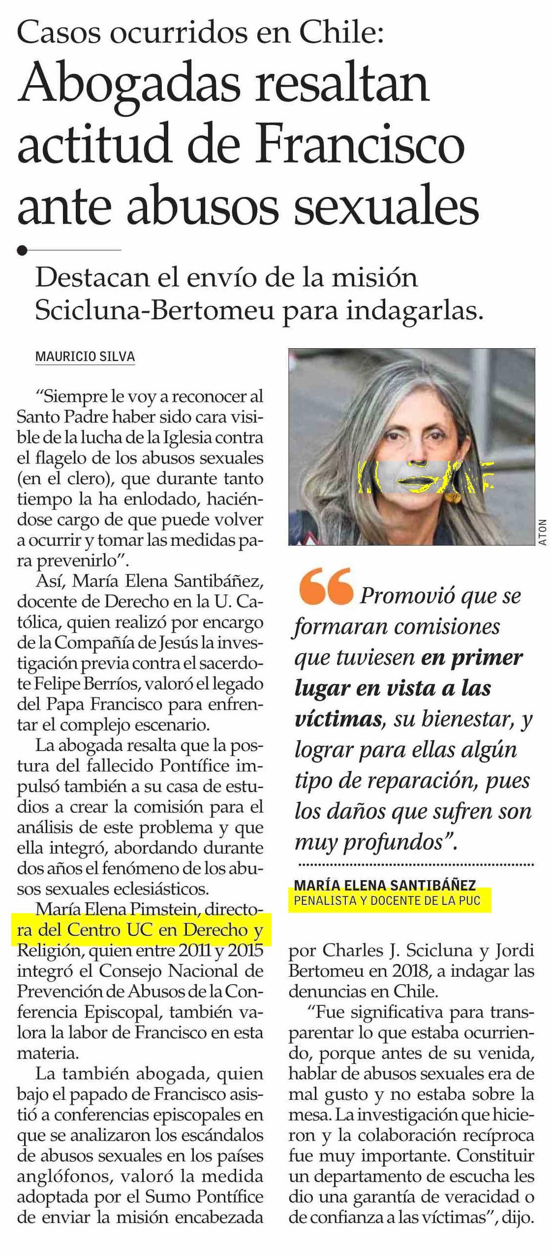 Abogadas resaltan actitud de Francisco ante abusos sexuales 23-04-2025 El Mercurio |