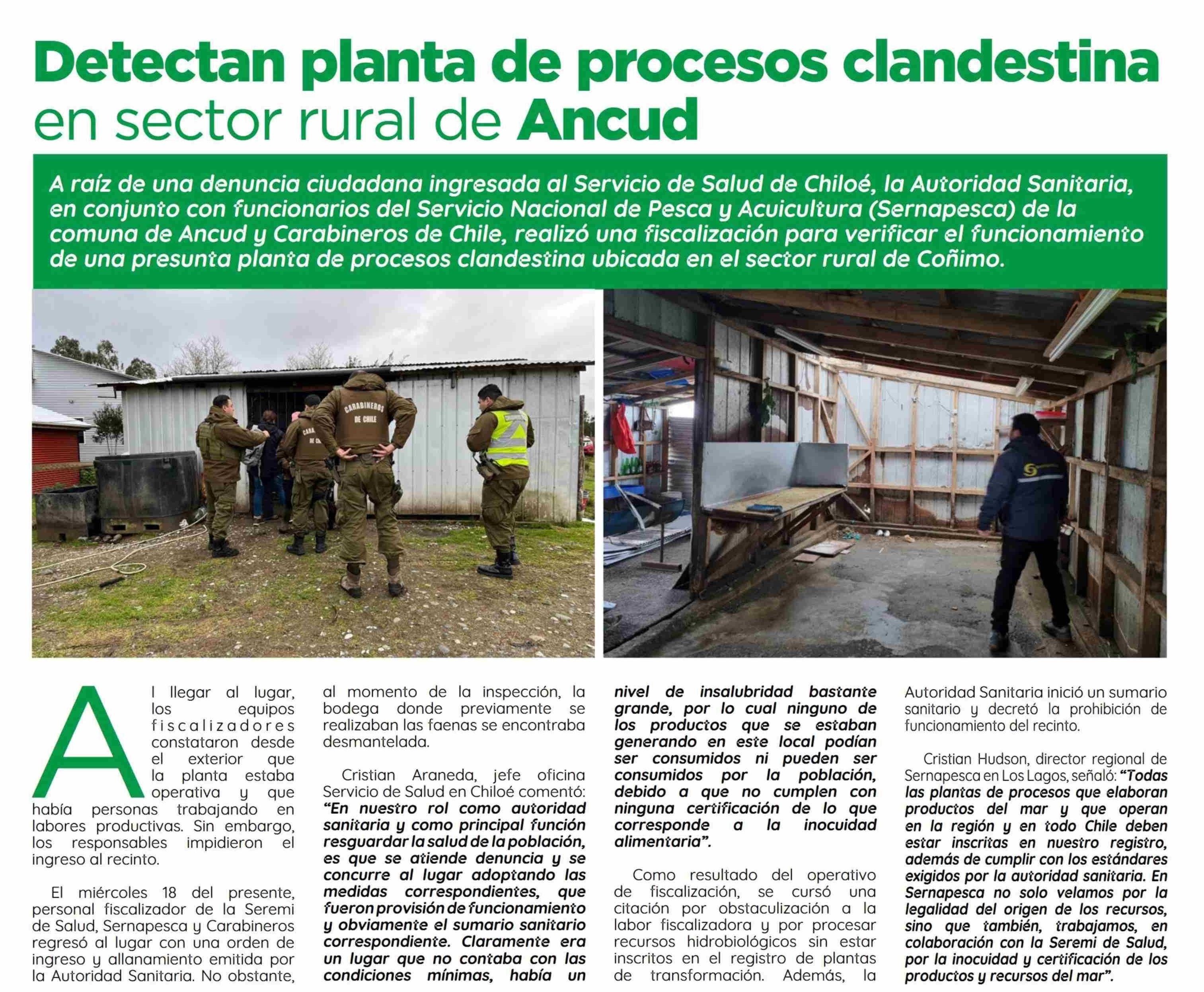 Título: Detectan planta de procesos clandestina en sector rural de Ancud