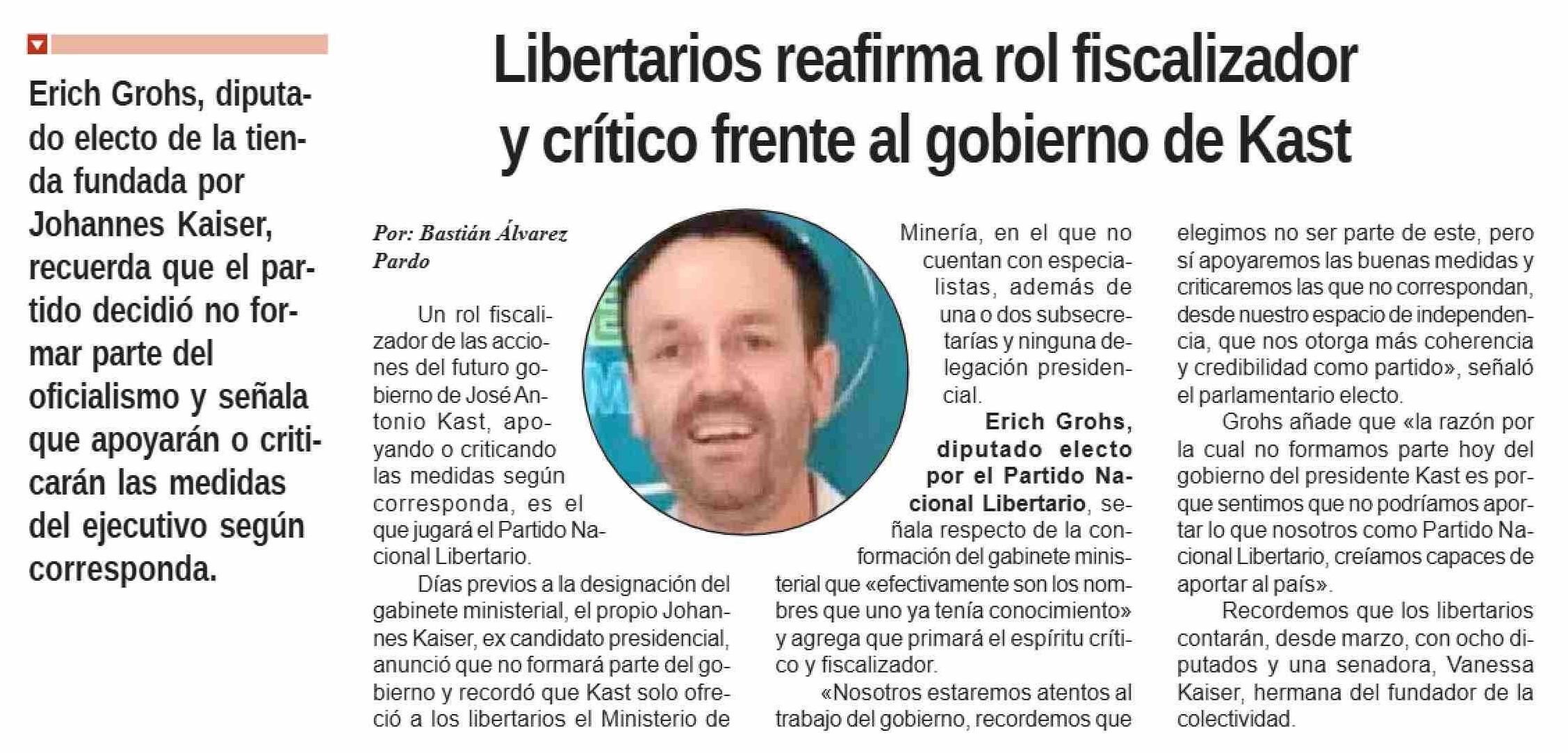 Título: Libertarios reafirma rol fiscalizador y crítico frente al gobierno de Kast