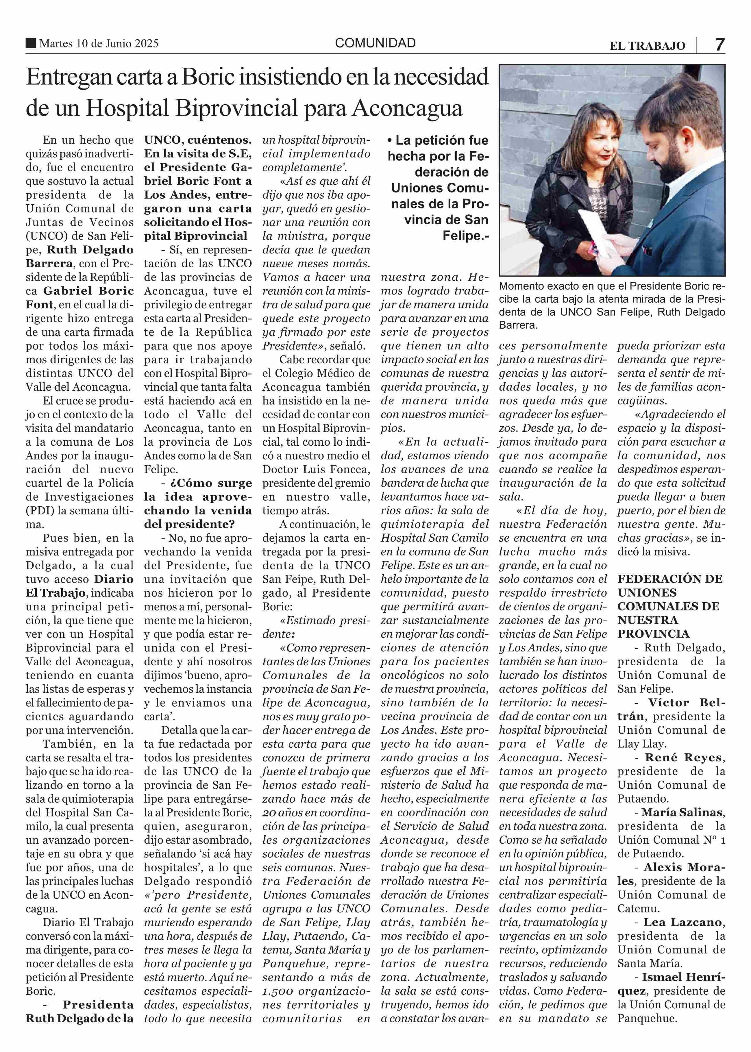 Entregan carta a Boric insistiendo en la necesidad de un Hospital Biprovincial para Aconcagua 10-06-2025 El Trabajo |