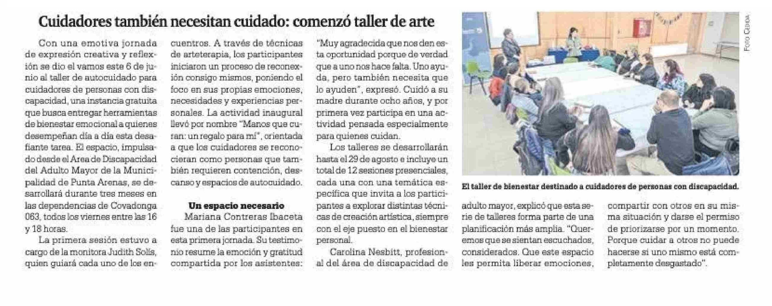 Cuidadores también necesitan cuidado: comenzó taller de arte 09-06-2025 La Prensa Austral |