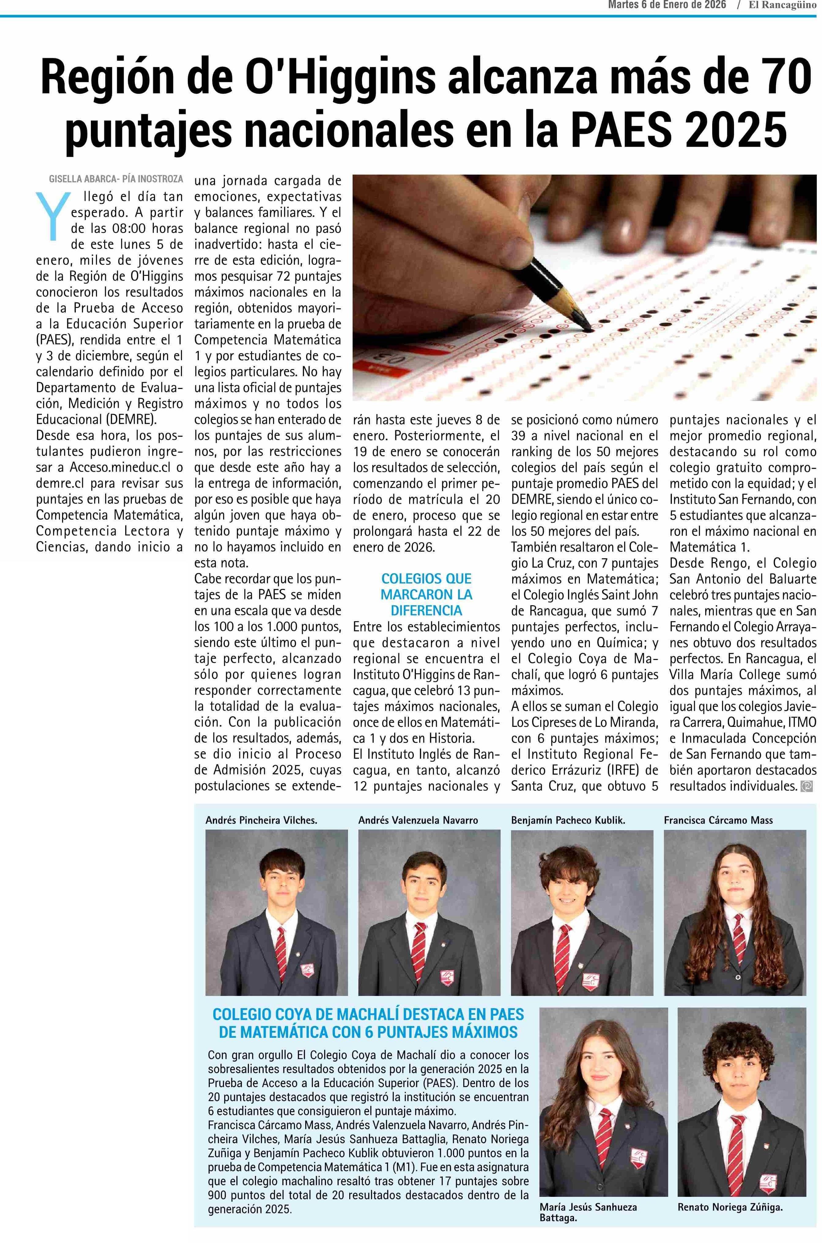 Título: Región de O'Higgins alcanza más de 70 puntajes nacionales en la PAES 2025