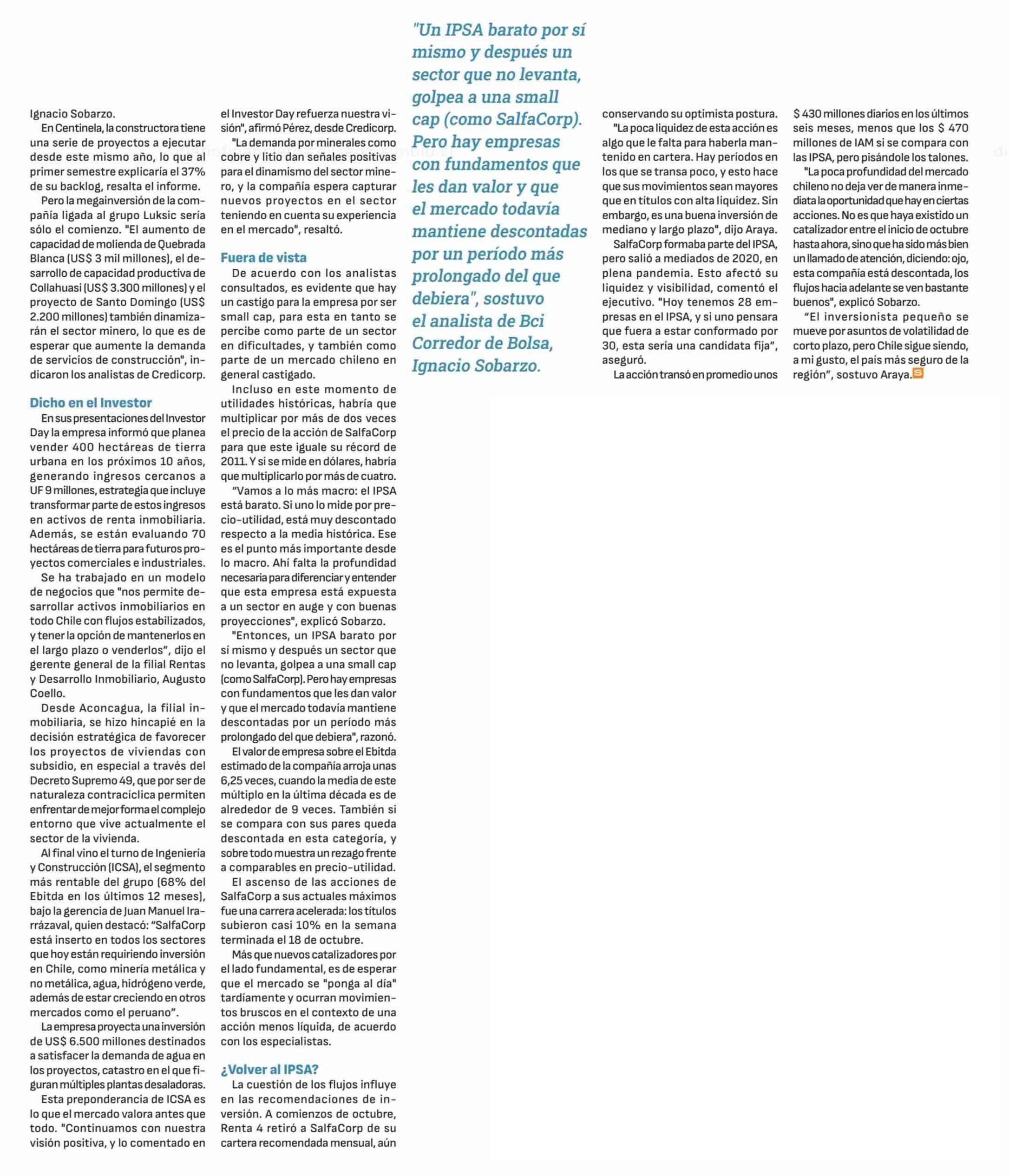| Título: | La minería anima a SalfaCorp: acción lidera en rentabilidad entre sus pares y mira de reojo al IPSA |