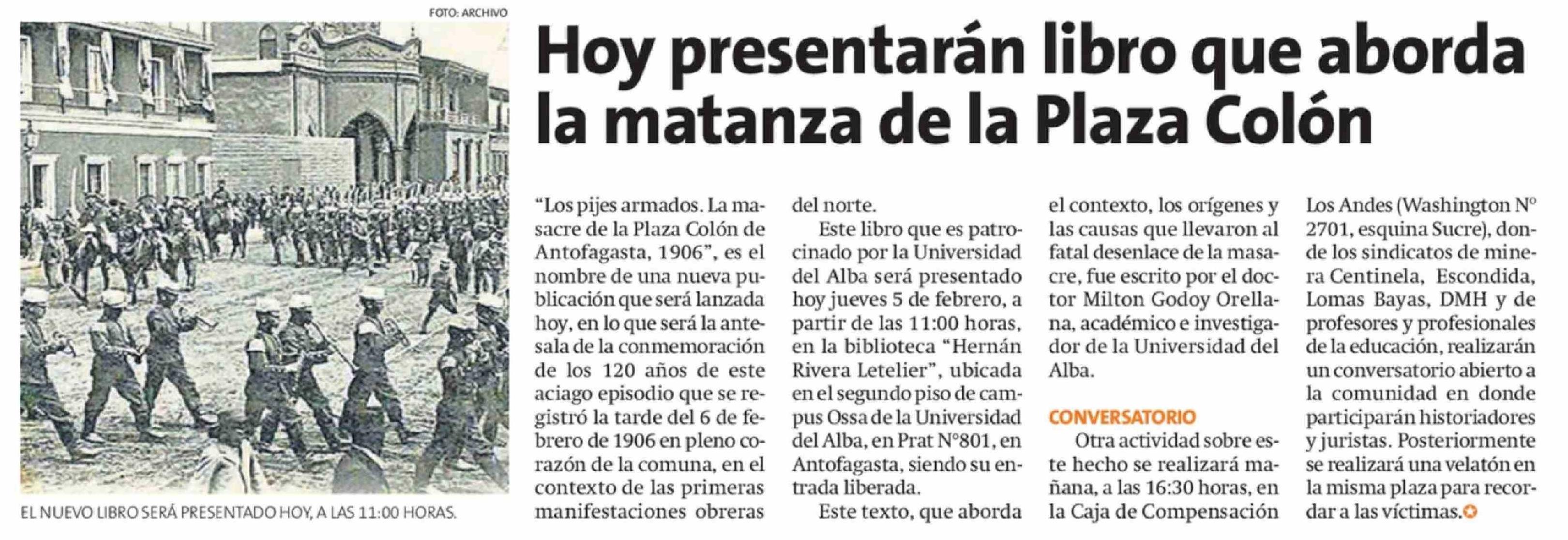 Hoy presentarán libro que aborda la matanza de la Plaza Colón 05-02-2026 La Estrella de Antofagasta |