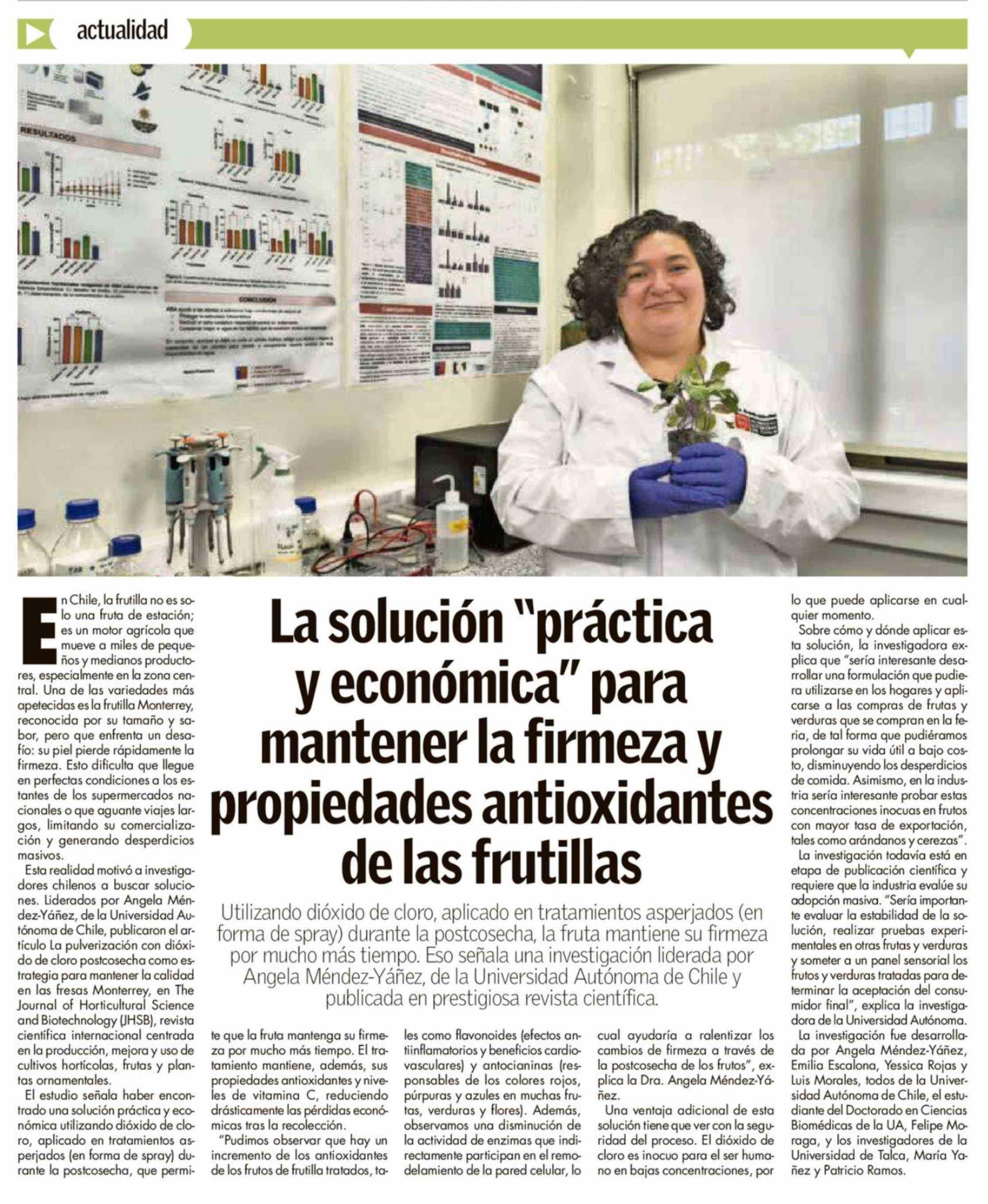 La solución "práctica y económica" para mantener la firmeza y propiedades antioxidantes de las frutillas 06-04-2026 Campo Sureño - Regiones IX, X y XIV |