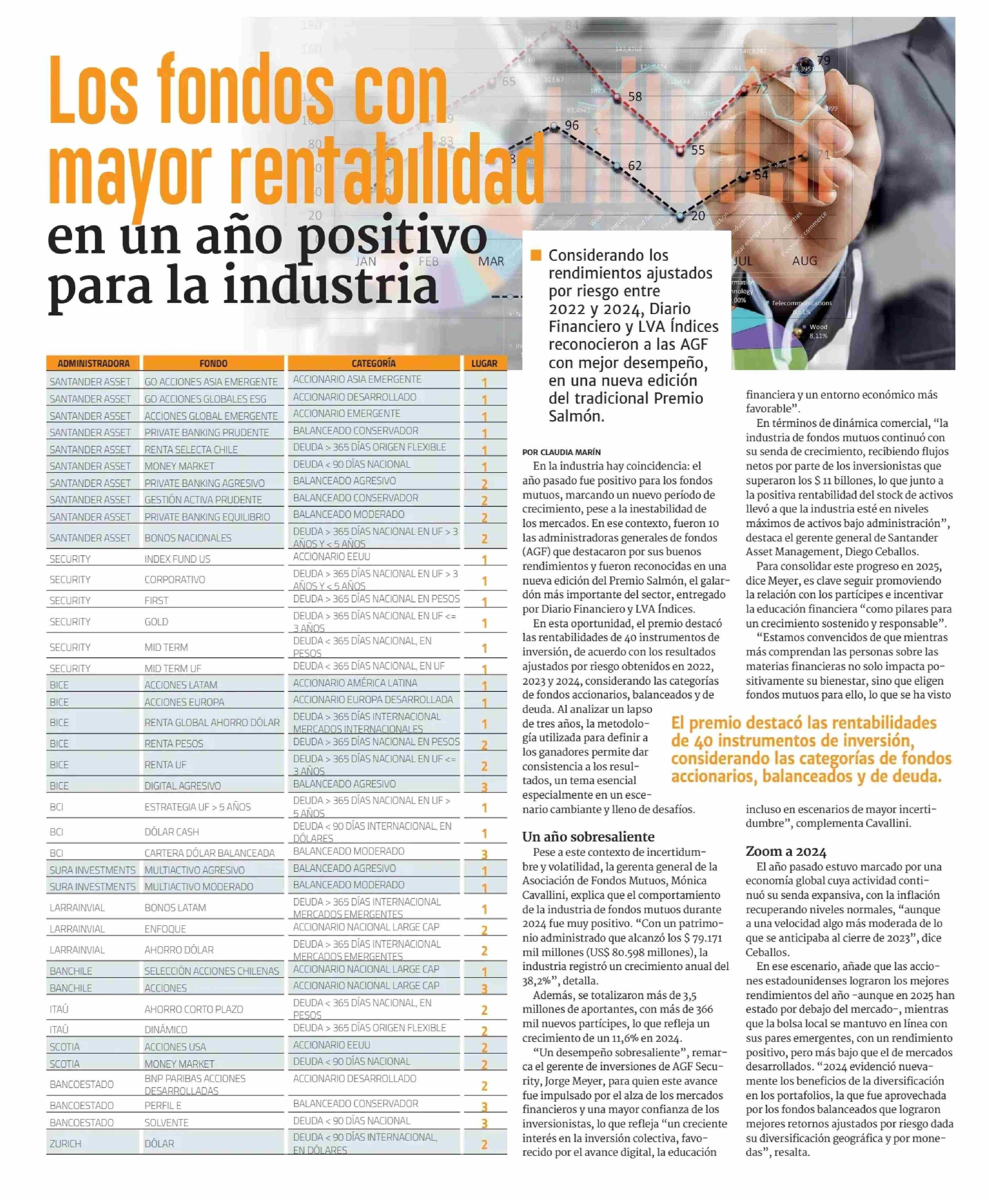 Los fondos con mayor rentabilidad en un año positivo para la industria 24-05-2025 Diario Financiero |