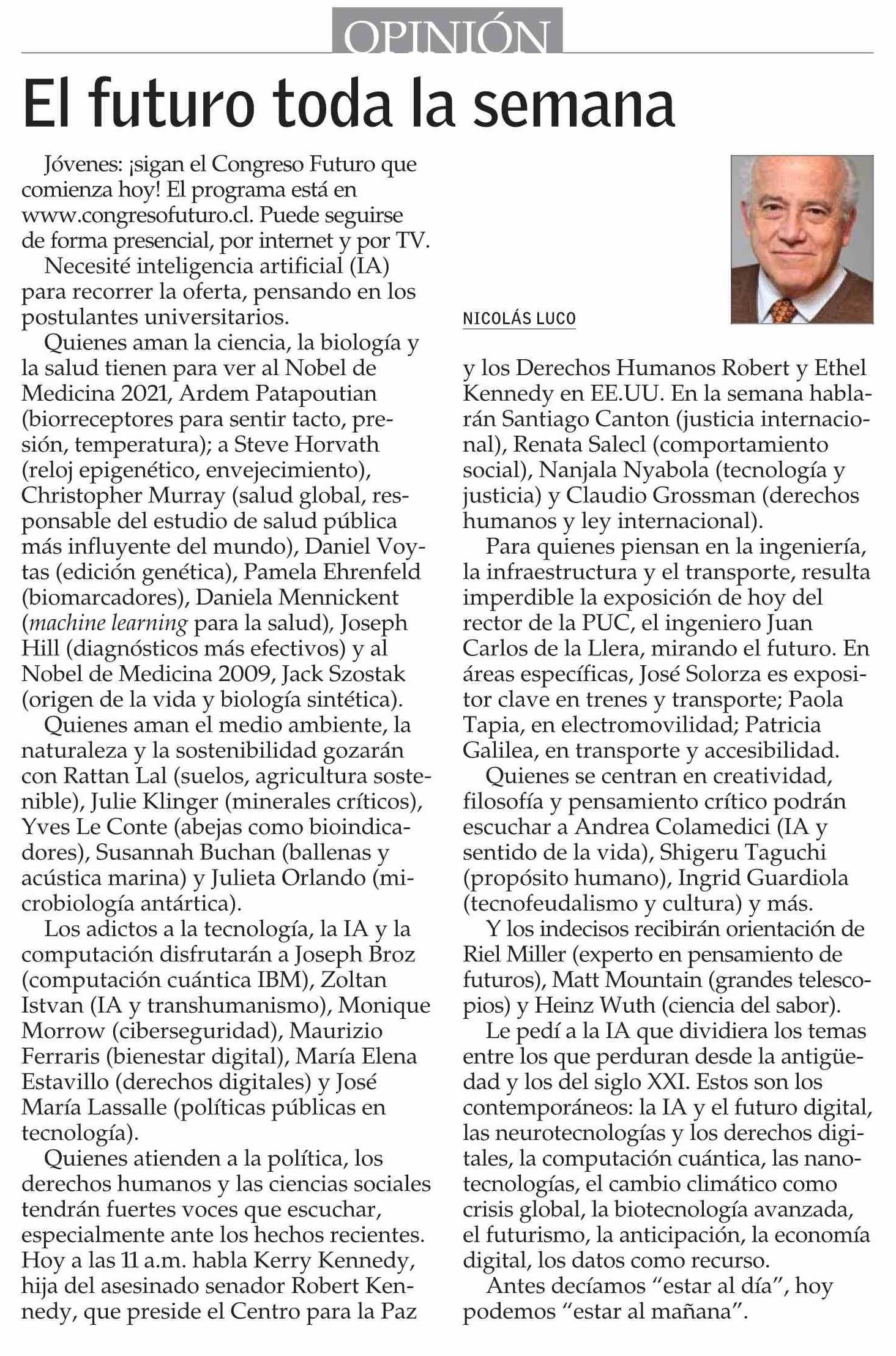 Columnas de Opinión: El futuro toda la semana 12-01-2026 El Mercurio |