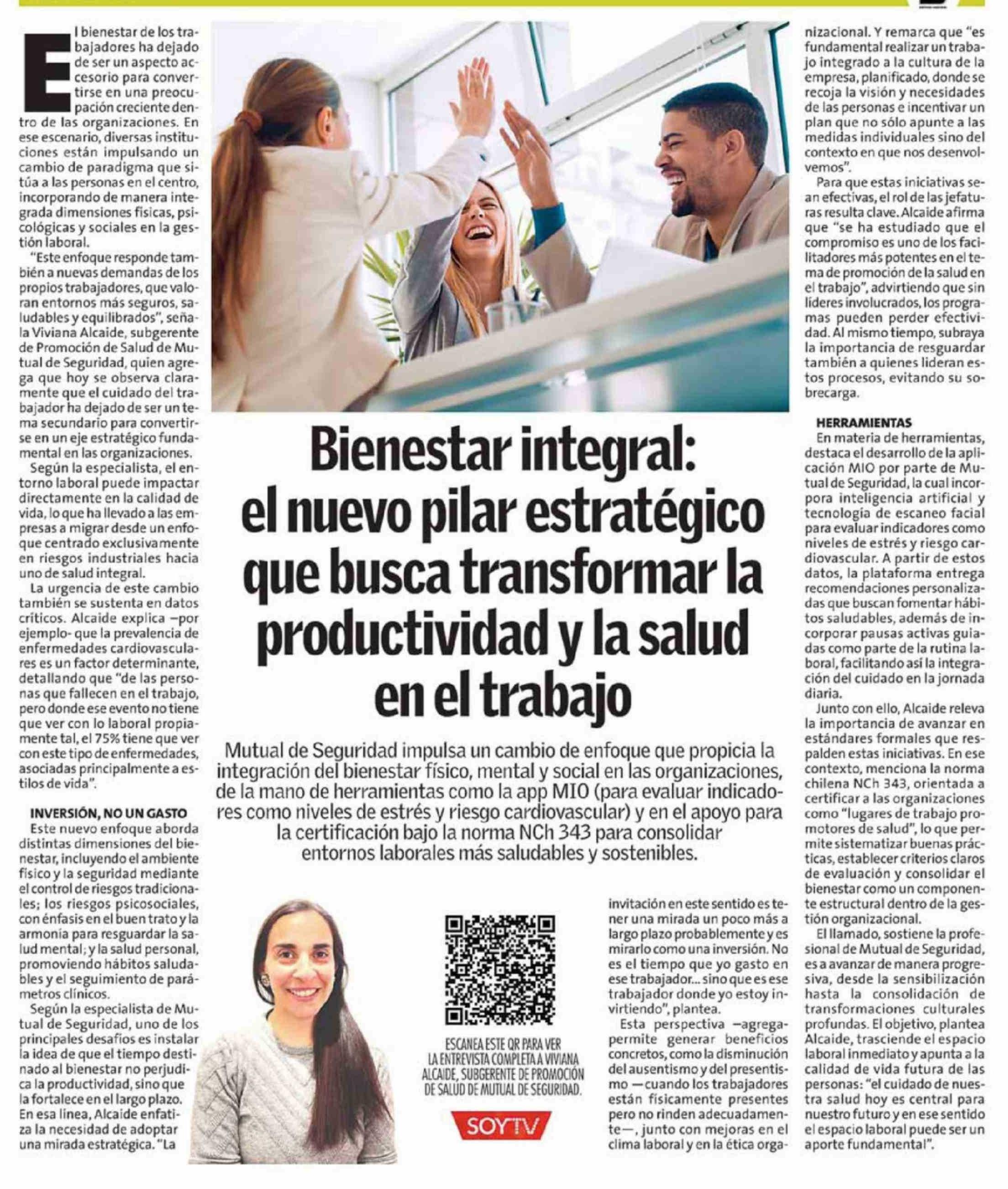 Bienestar integral: el nuevo pilar estratégico que busca transformar la productividad y la salud en el trabajo 27-03-2026 El Mercurio de Calama |