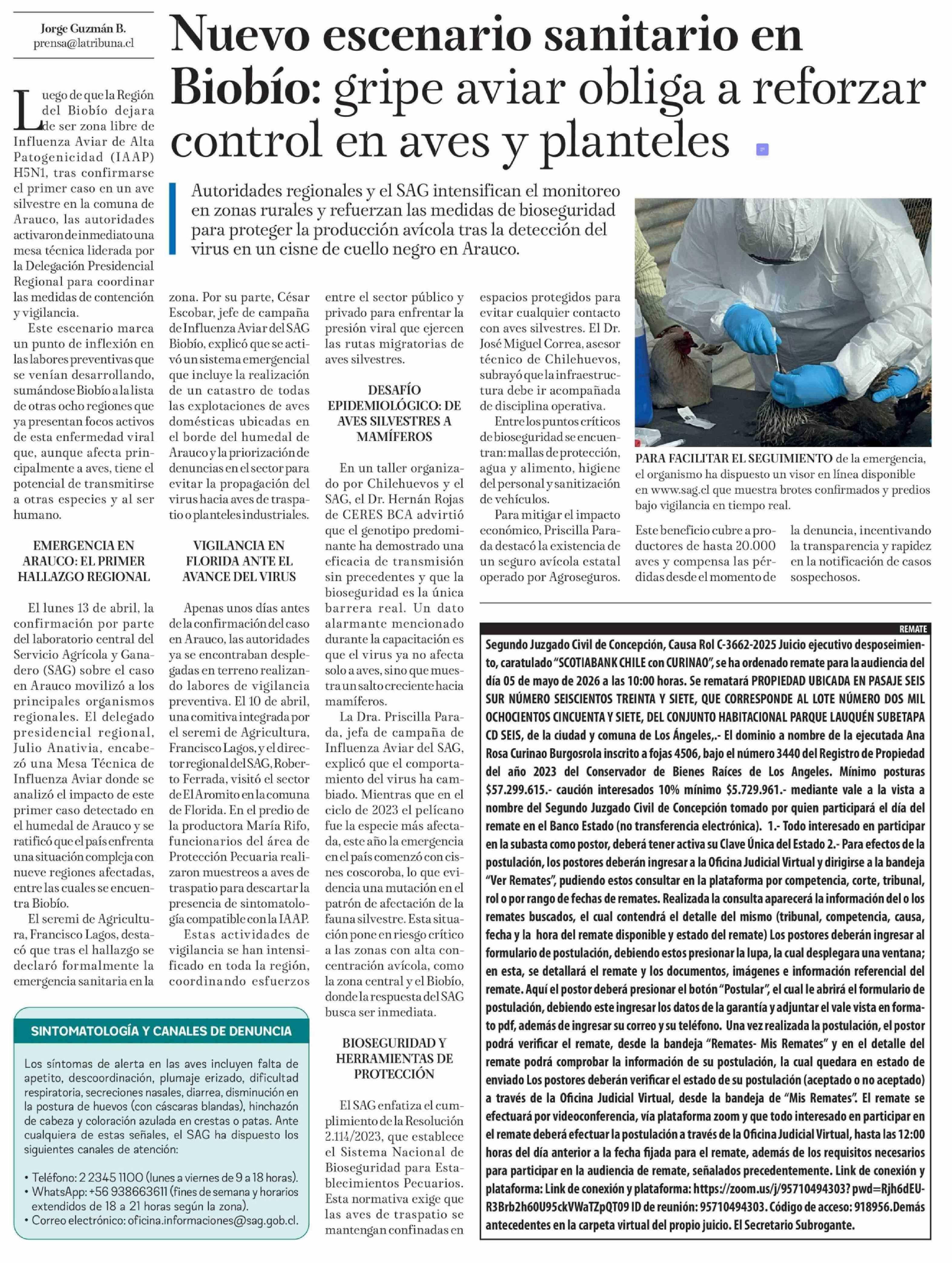 Título: Nuevo escenario sanitario en Biobío: gripe aviar obliga a reforzar control en aves y planteles