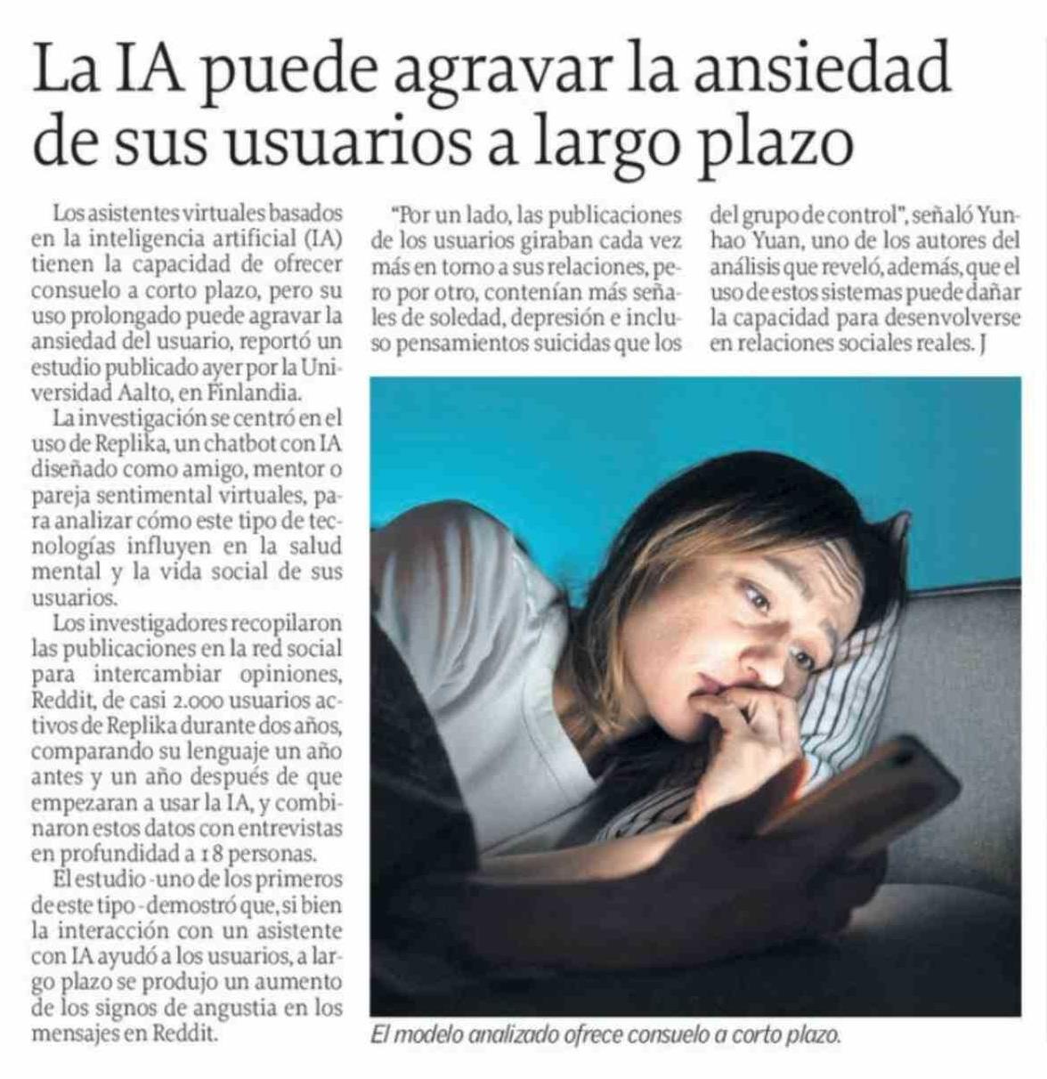 | Título: | La IA puede agravar la ansiedad de sus usuarios a largo plazo |