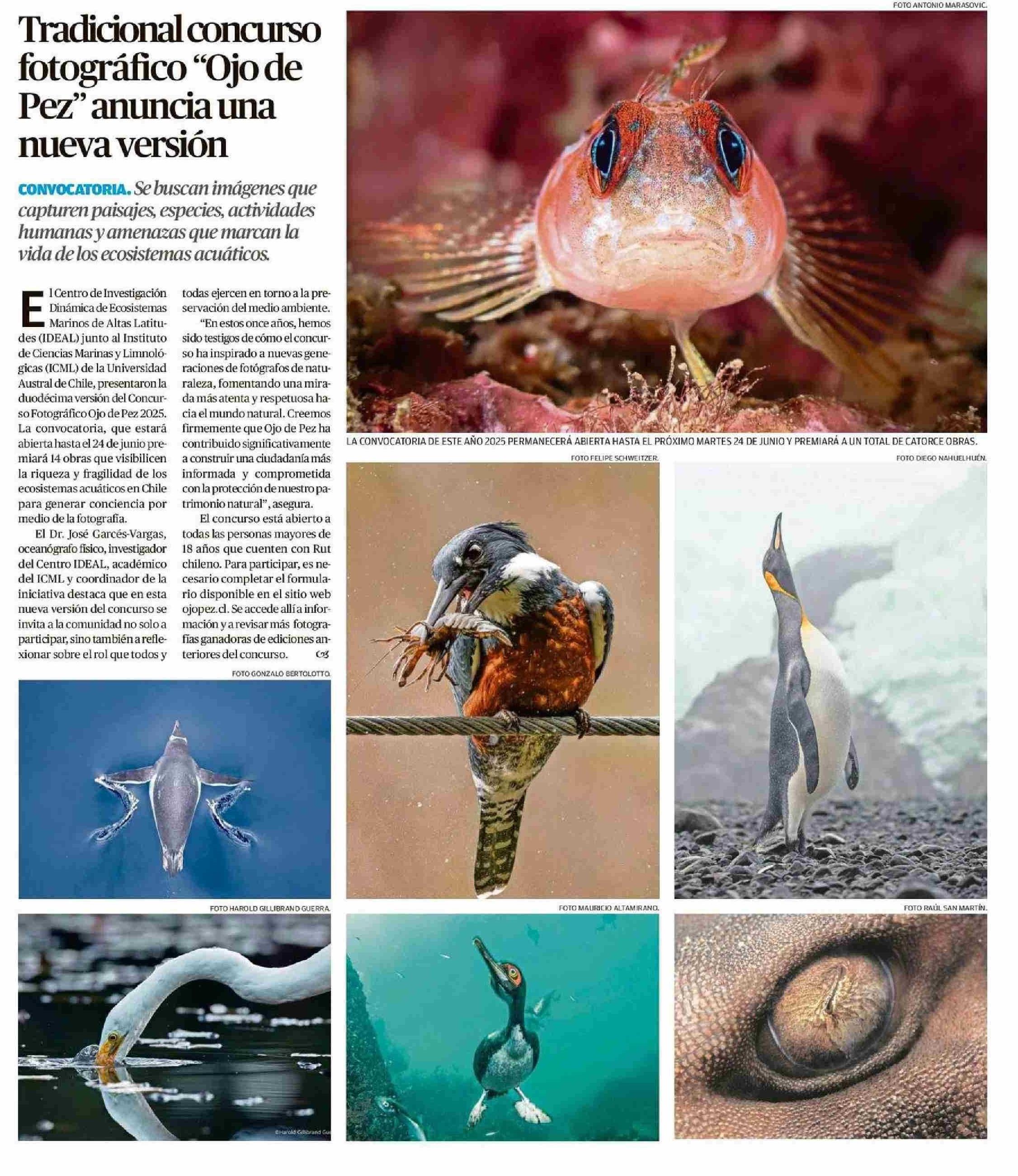 Tradicional concurso fotográfico “Ojo de Pez” anuncia una nueva versión 10-06-2025 Diario Austral Región de Los Ríos |