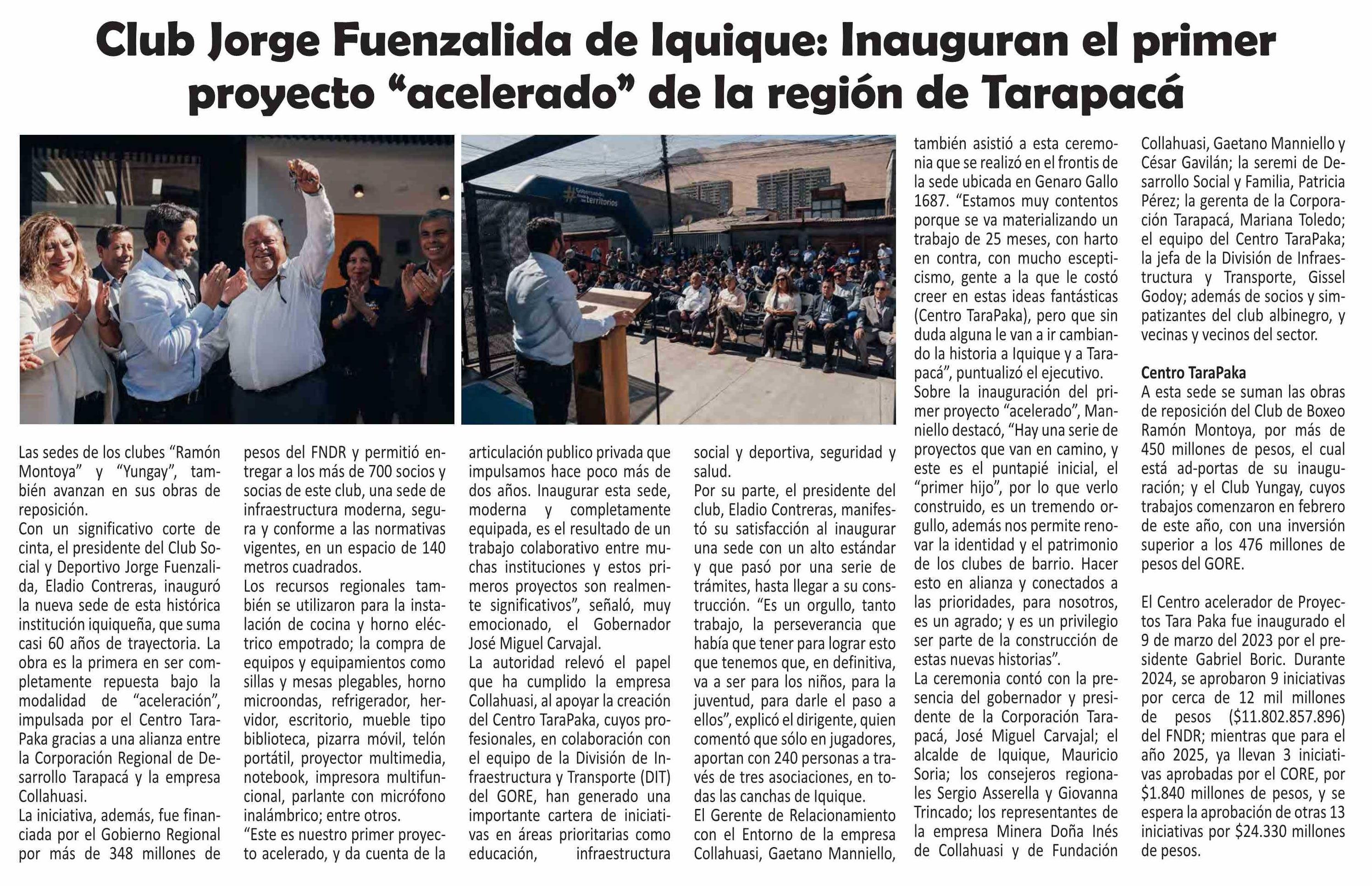 Club Jorge Fuenzalida de Iquique: Inauguran el primer proyecto “acelerado” de la región de Tarapacá 15-06-2025 El Longino |