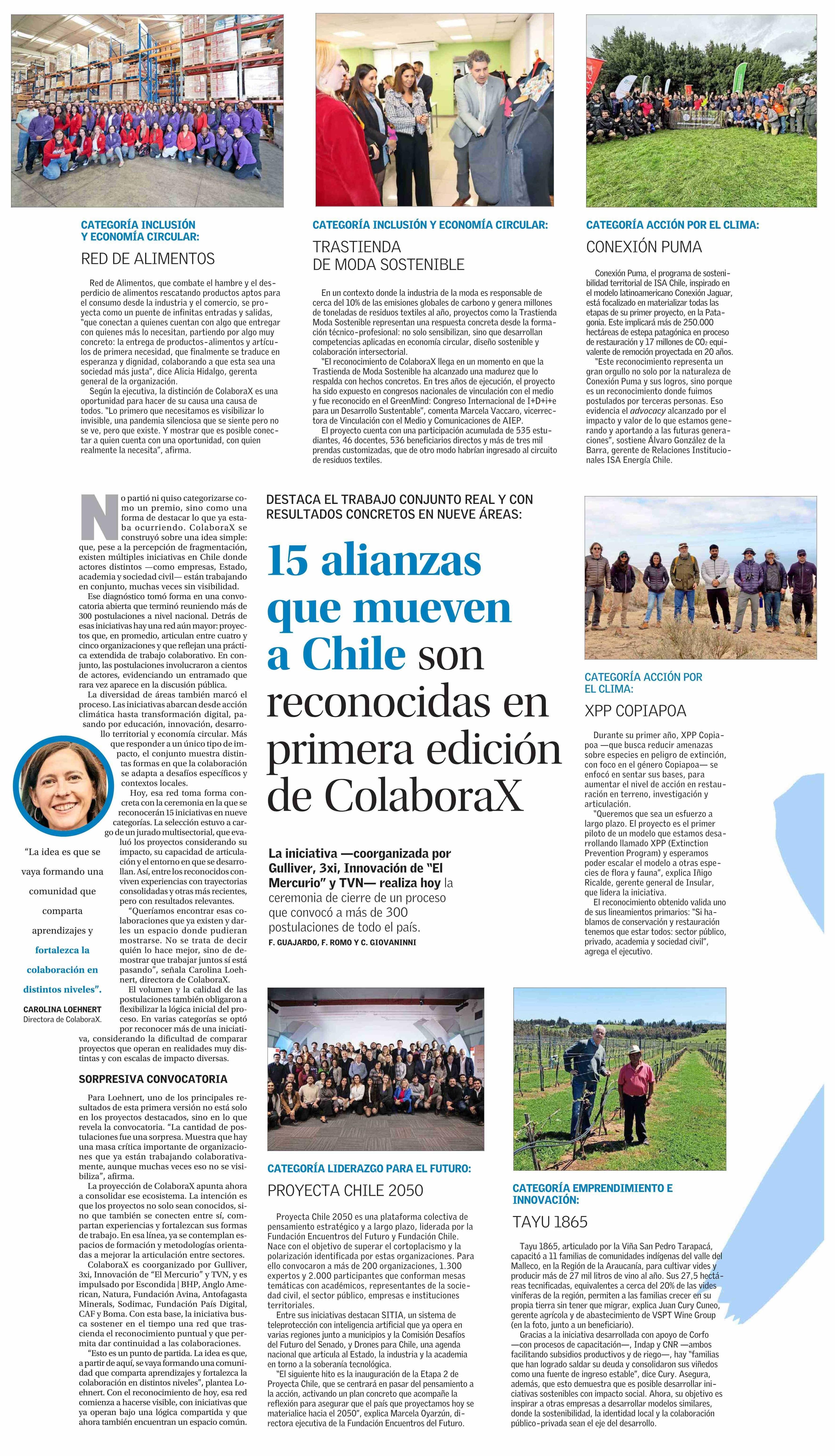 15 Alianzas que mueven a Chile son reconocidas en primera edición de ColaboraX 23-04-2026 El Mercurio |