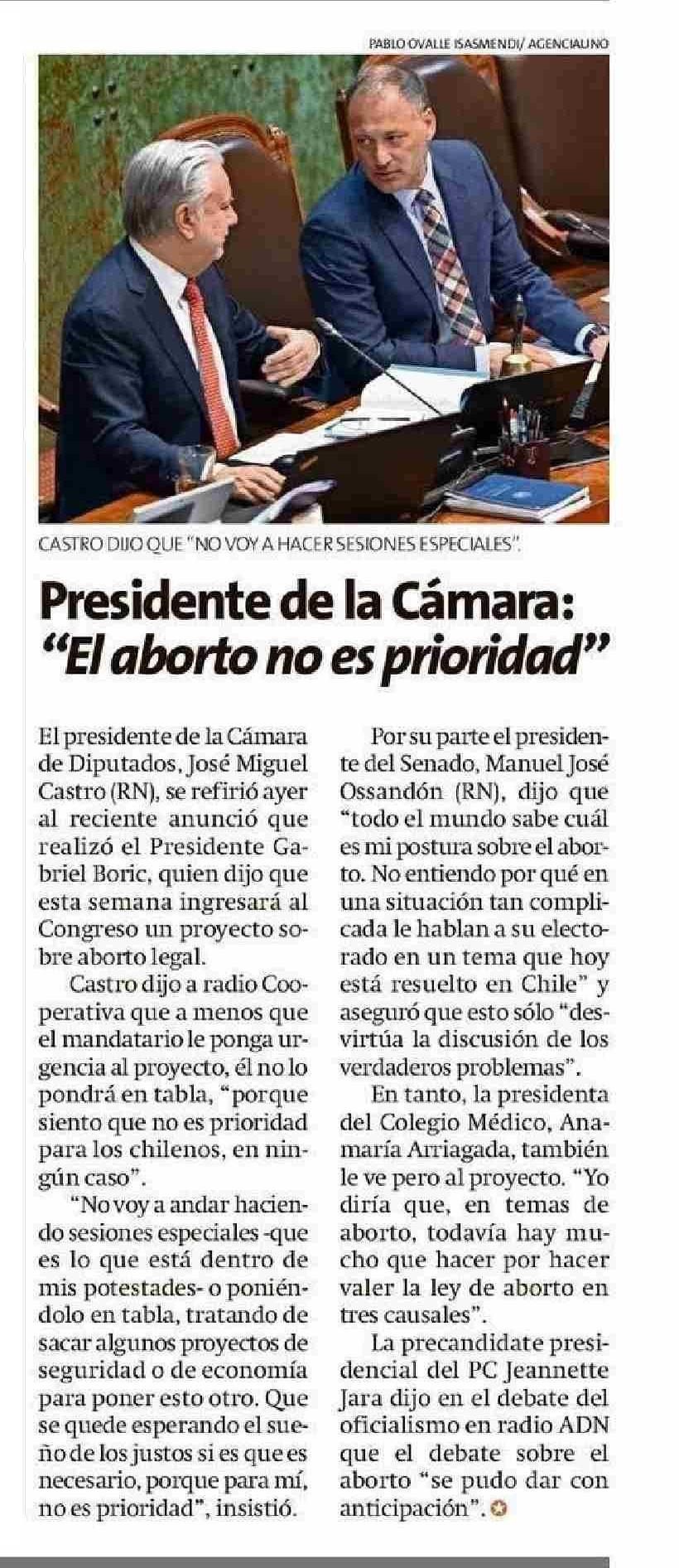 Presidente de la Cámara: “El aborto no es prioridad” 27-05-2025 La Estrella de Chiloé |