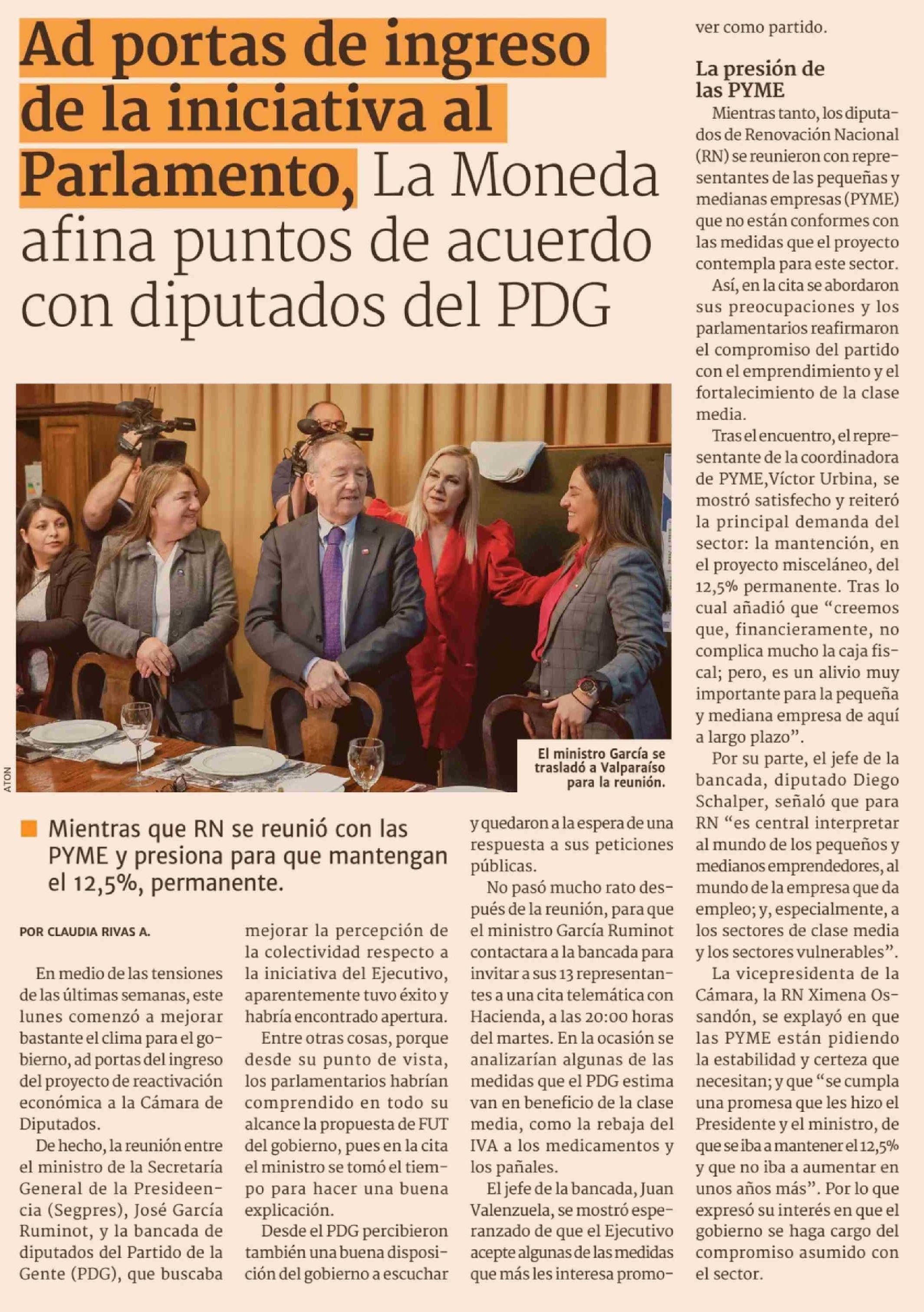 Título: Ad portas de ingreso de la iniciativa al Parlamento, La Moneda afina puntos de acuerdo con diputados del PDG