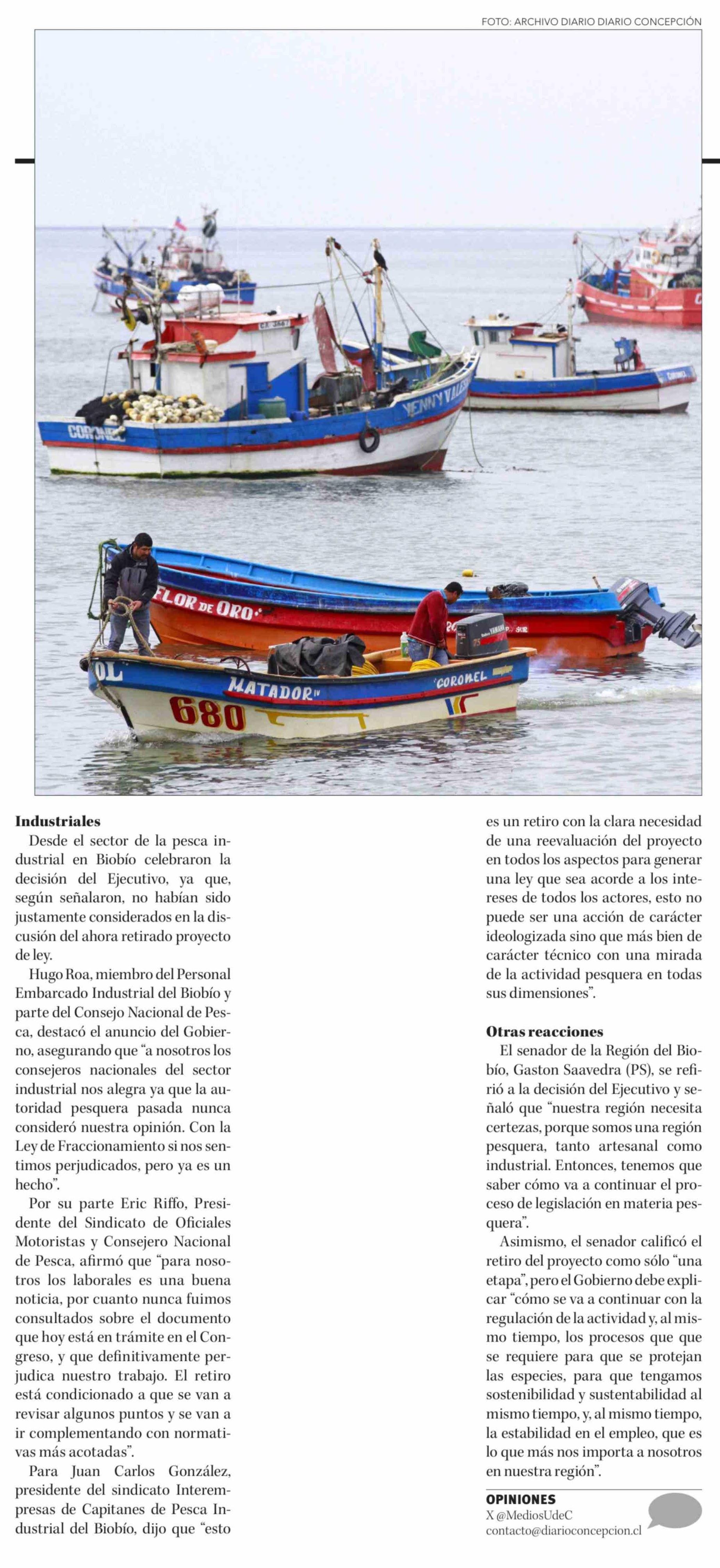 Título: Artesanales e industriales difieren ante retiro de proyecto de nueva Ley de Pesca
