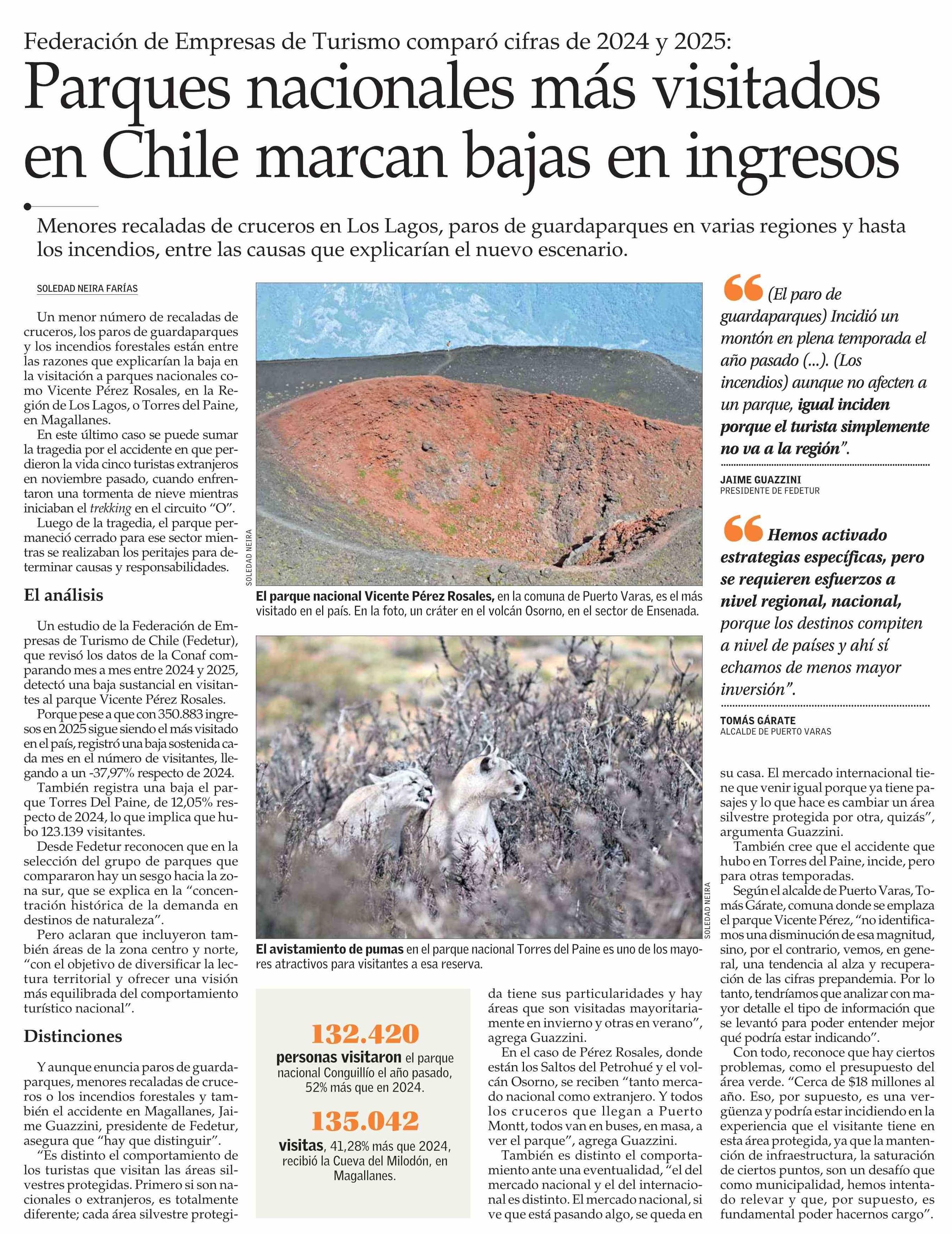 Parques nacionales más visitados en Chile marcan bajas en ingresos 07-02-2026 El Mercurio |