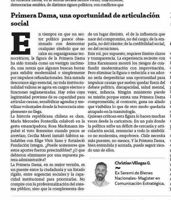 | Título: | Columnas de Opinión: Primera Dama, una oportunidad de articulación social |
