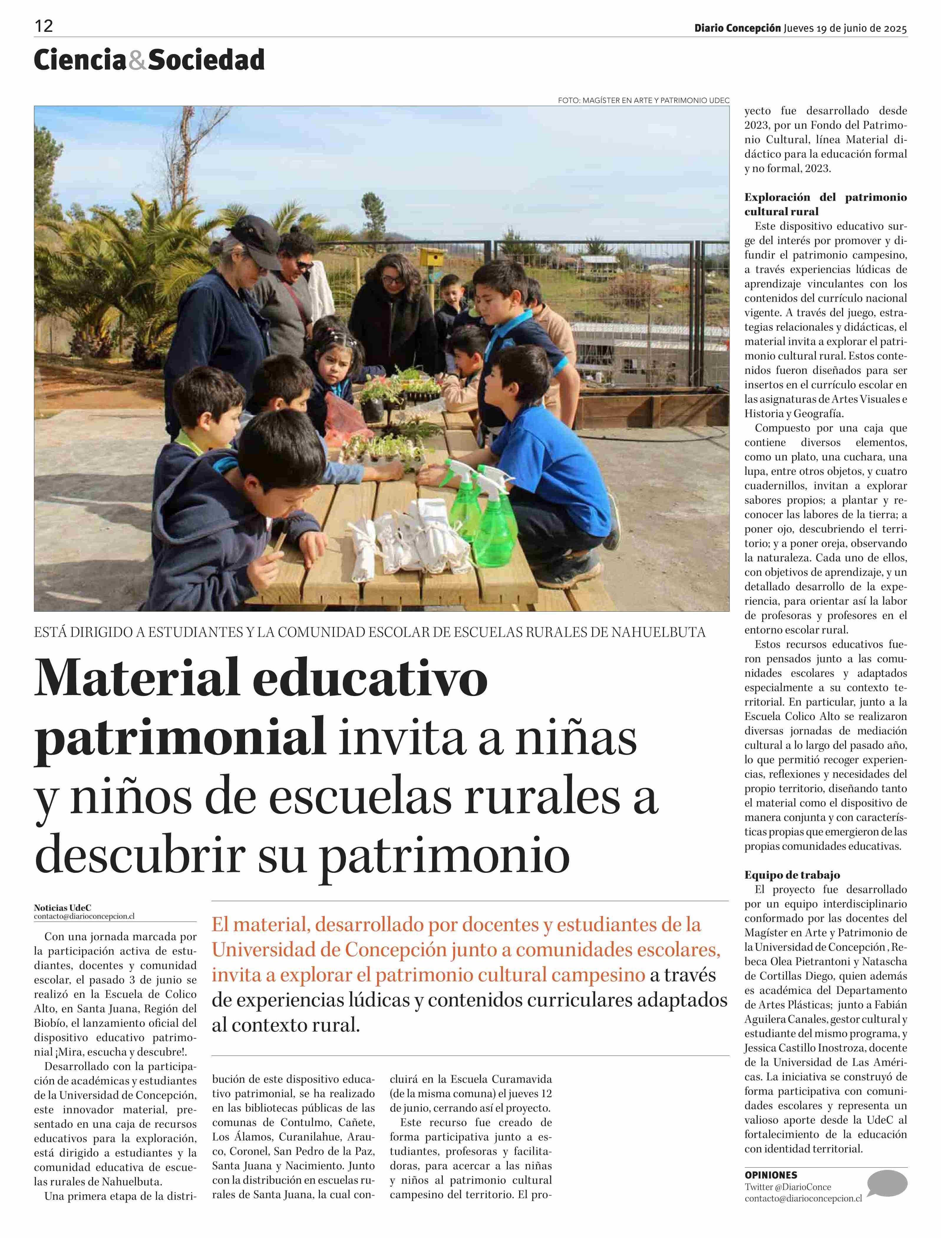 Material educativo patrimonial invita a niñas y niños de escuelas rurales a descubrir su patrimonio 19-06-2025 Diario Concepción |
