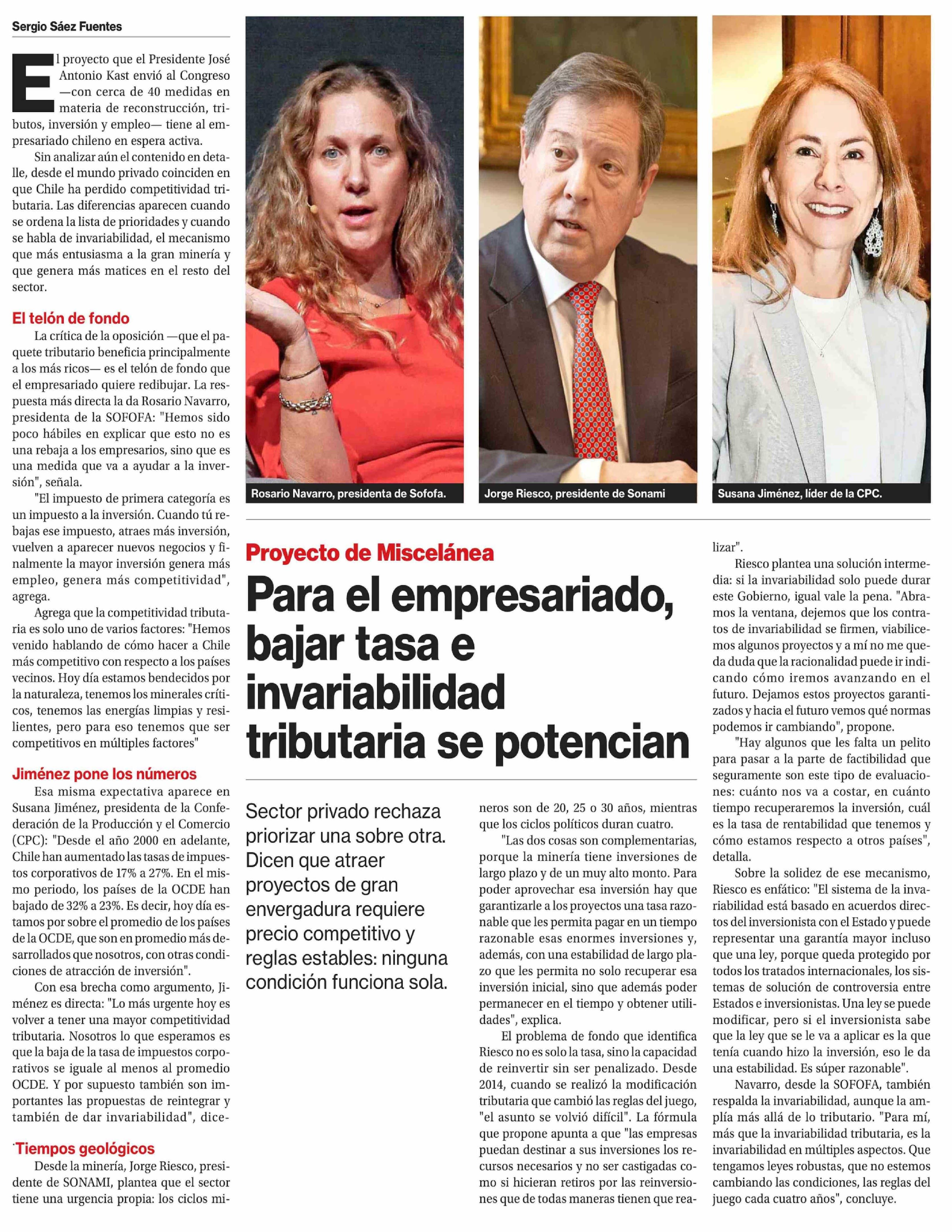 Título: Para el empresariado, bajar tasa e invariabilidad tributaria se potencian