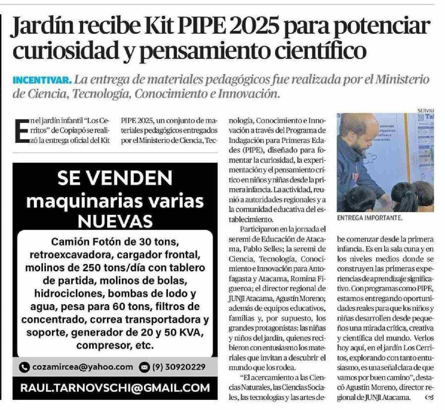 Jardín recibe Kit PIPE 2025 para potenciar curiosidad y pensamiento científico 18-05-2025 El Diario de Atacama |
