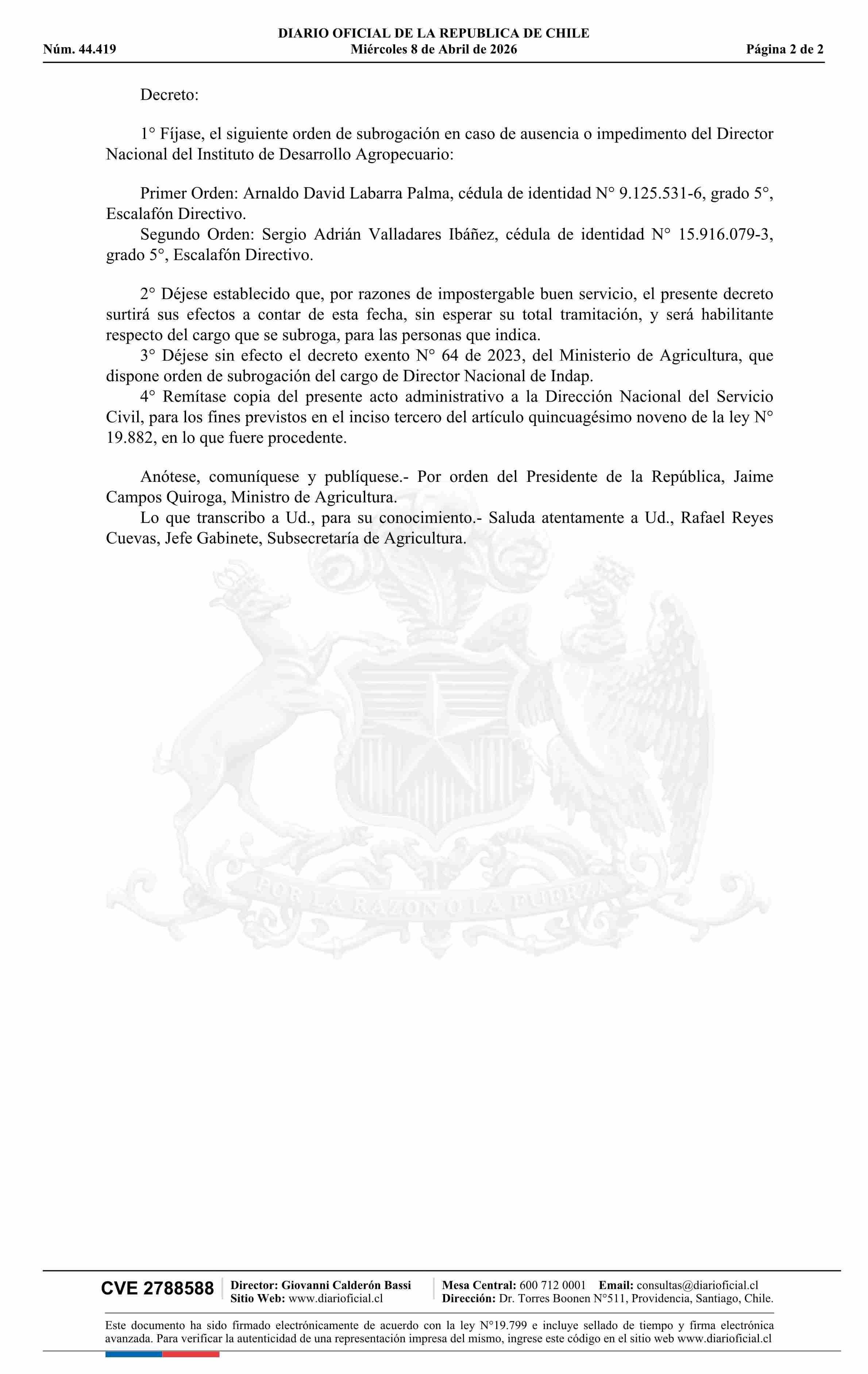 MINISTERIO DE AGRICULTURA 08-04-2026 Diario Oficial Edición Electrónica |