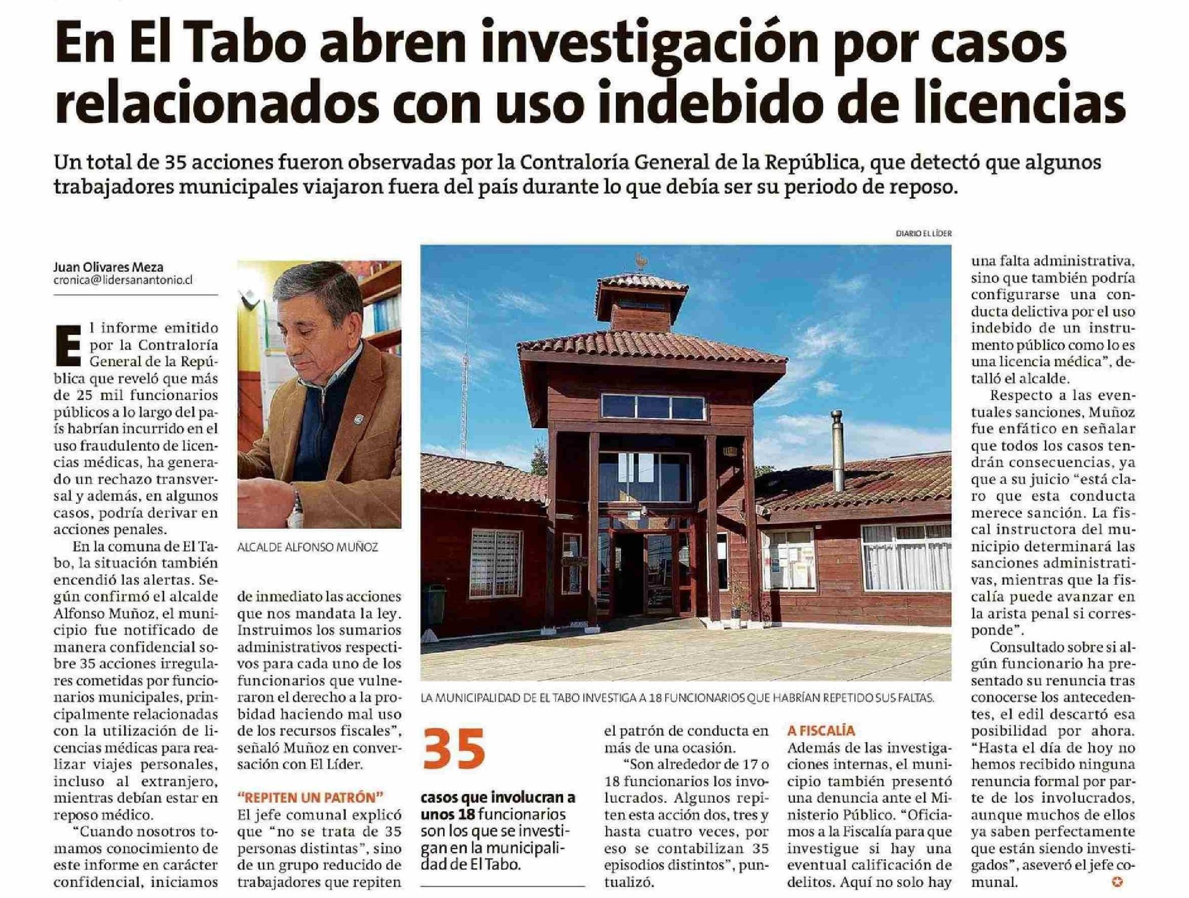 En El Tabo abren investigación por casos relacionados con uso indebido de licencias 01-06-2025 El Líder |