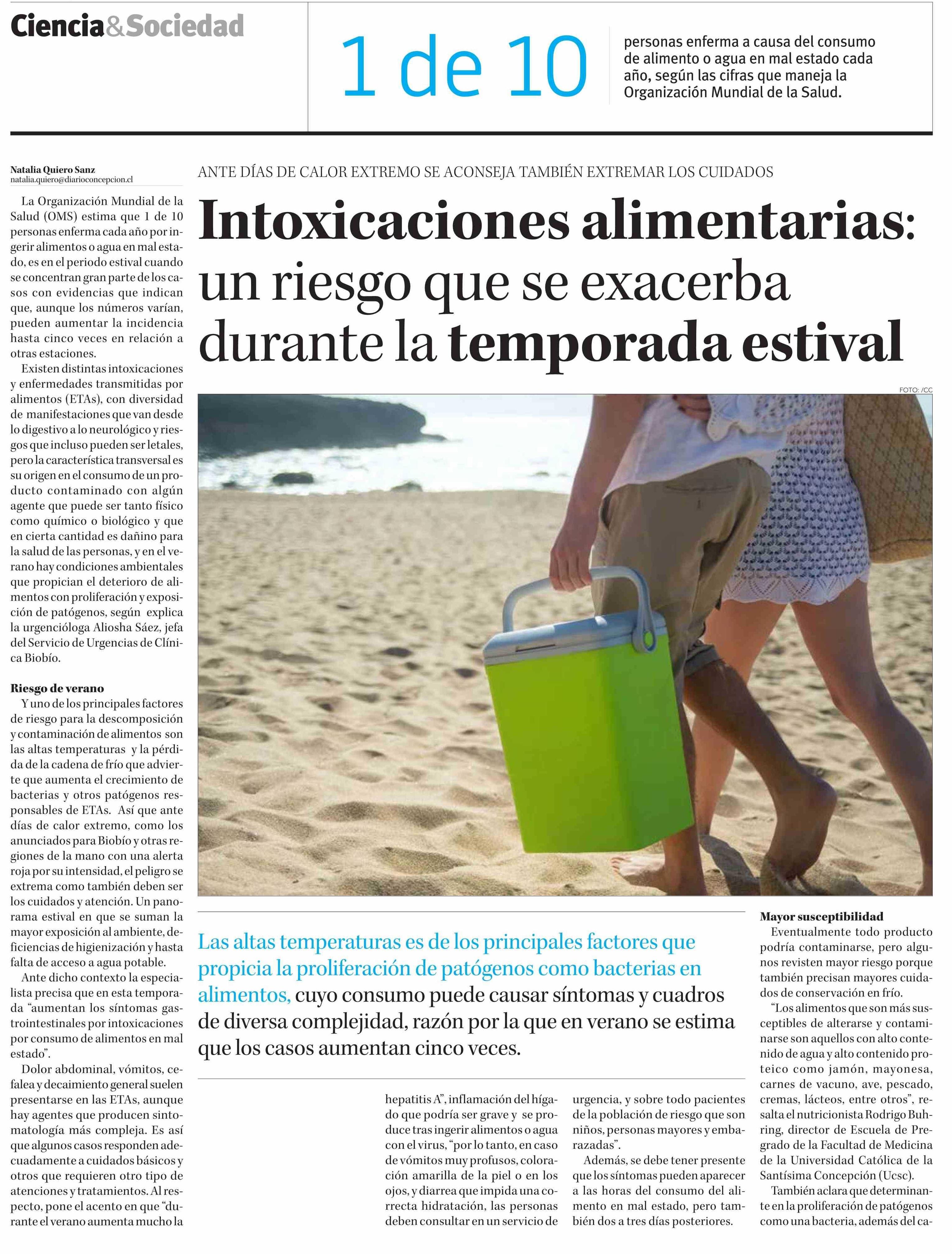 Intoxicaciones alimentarias: un riesgo que se exacerba durante la temporada estival 07-02-2025 Diario Concepción |