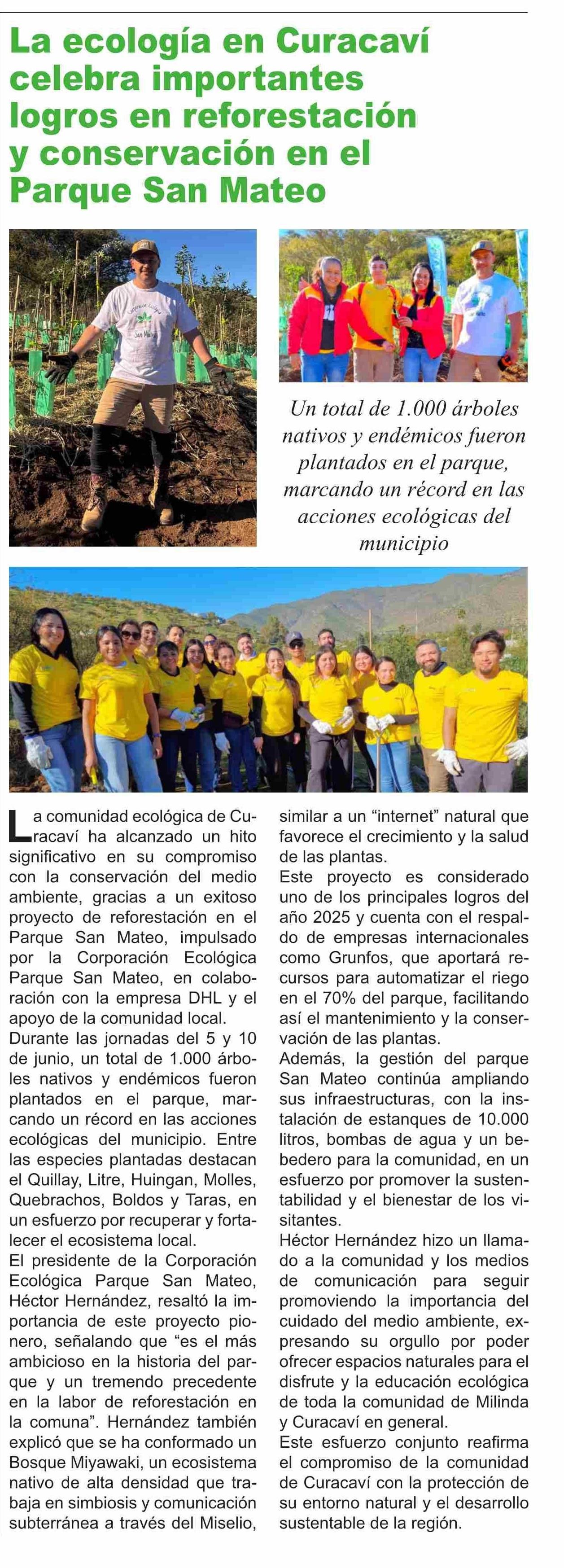 Título: La ecología en Curacaví celebra importantes logros en reforestación y conservación en el Paraue San Mateo