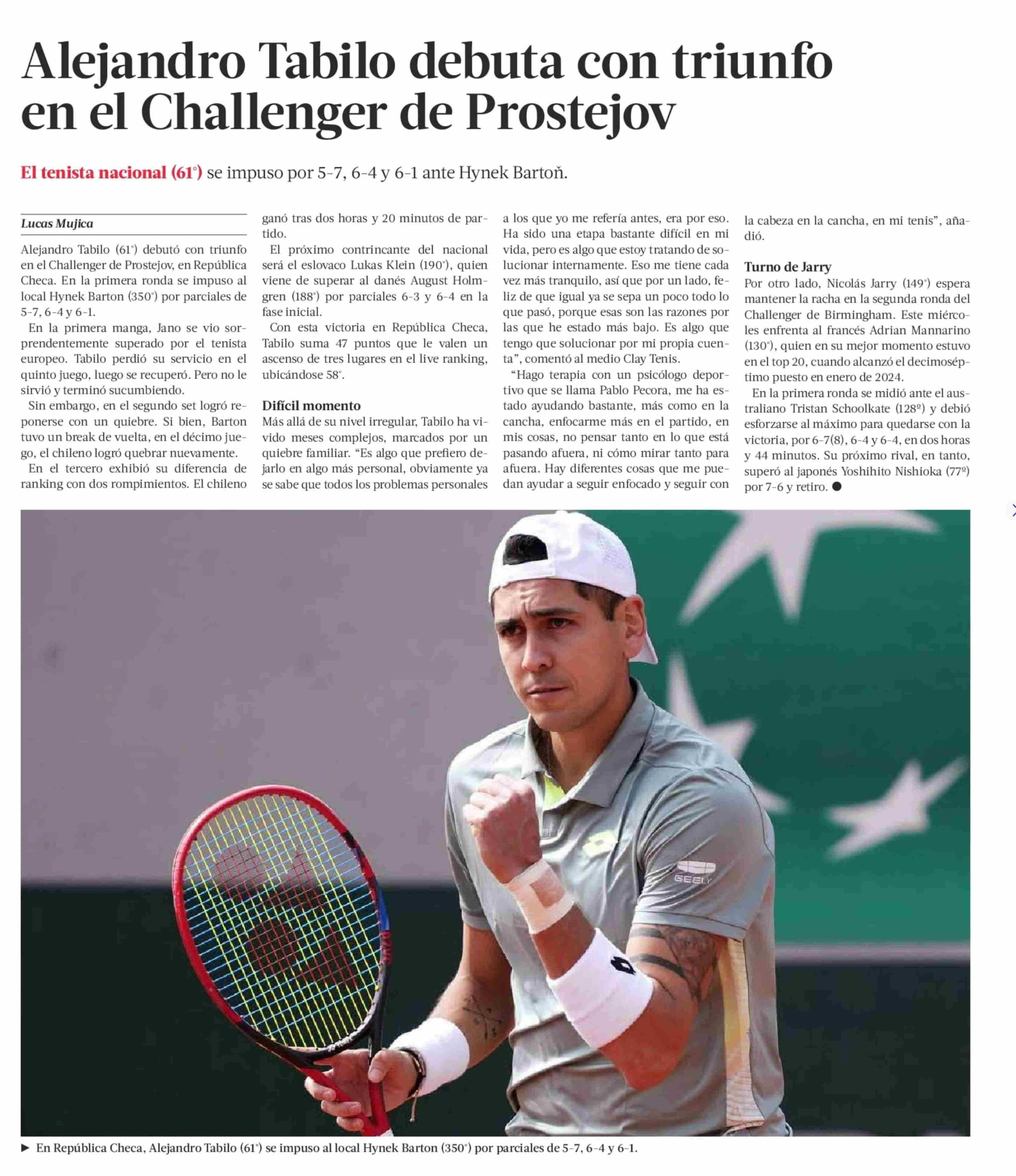 Alejandro Tabilo debuta con triunfo en el Challenger de Prostejov 04-06-2025 La Tercera |