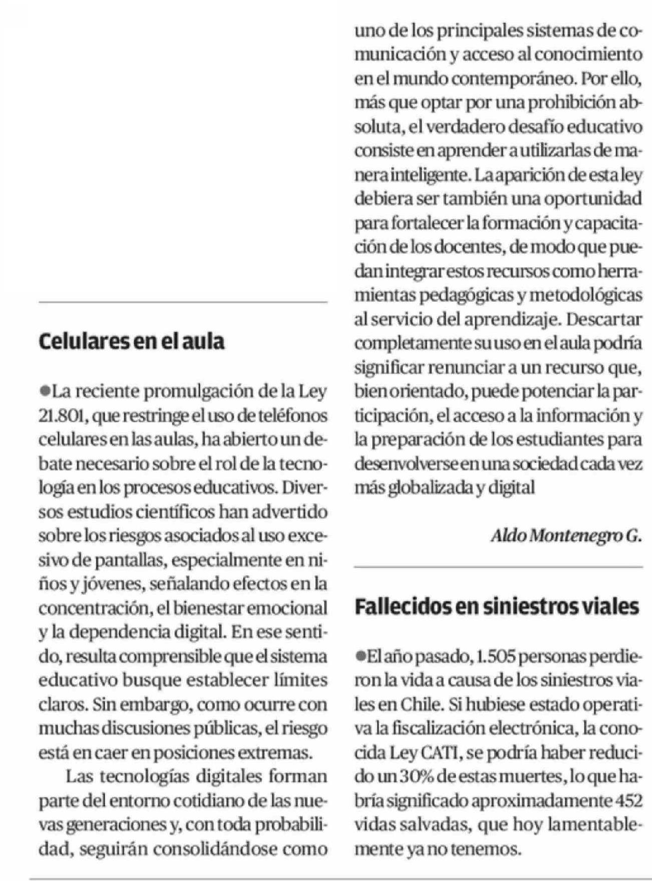 CARTAS: Celulares en el aula 15-03-2026 El Mercurio de Antofagasta |