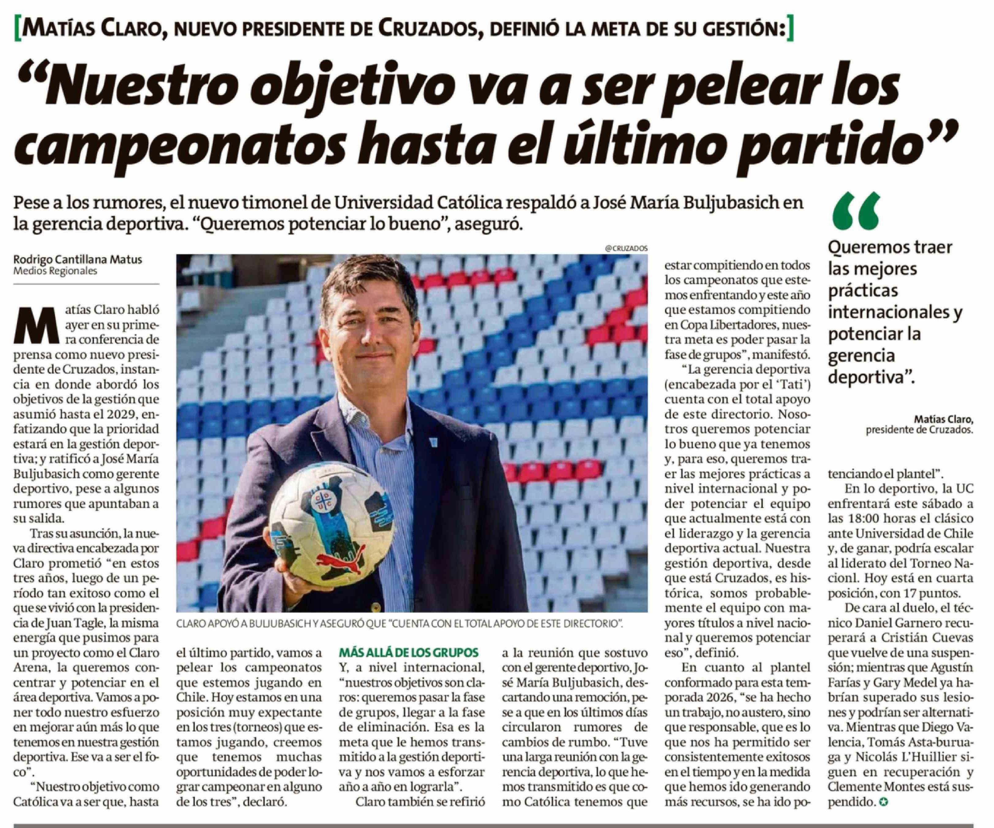 | Título: | "Nuestro objetivo va a ser pelear los campeonatos hasta el último partido" |