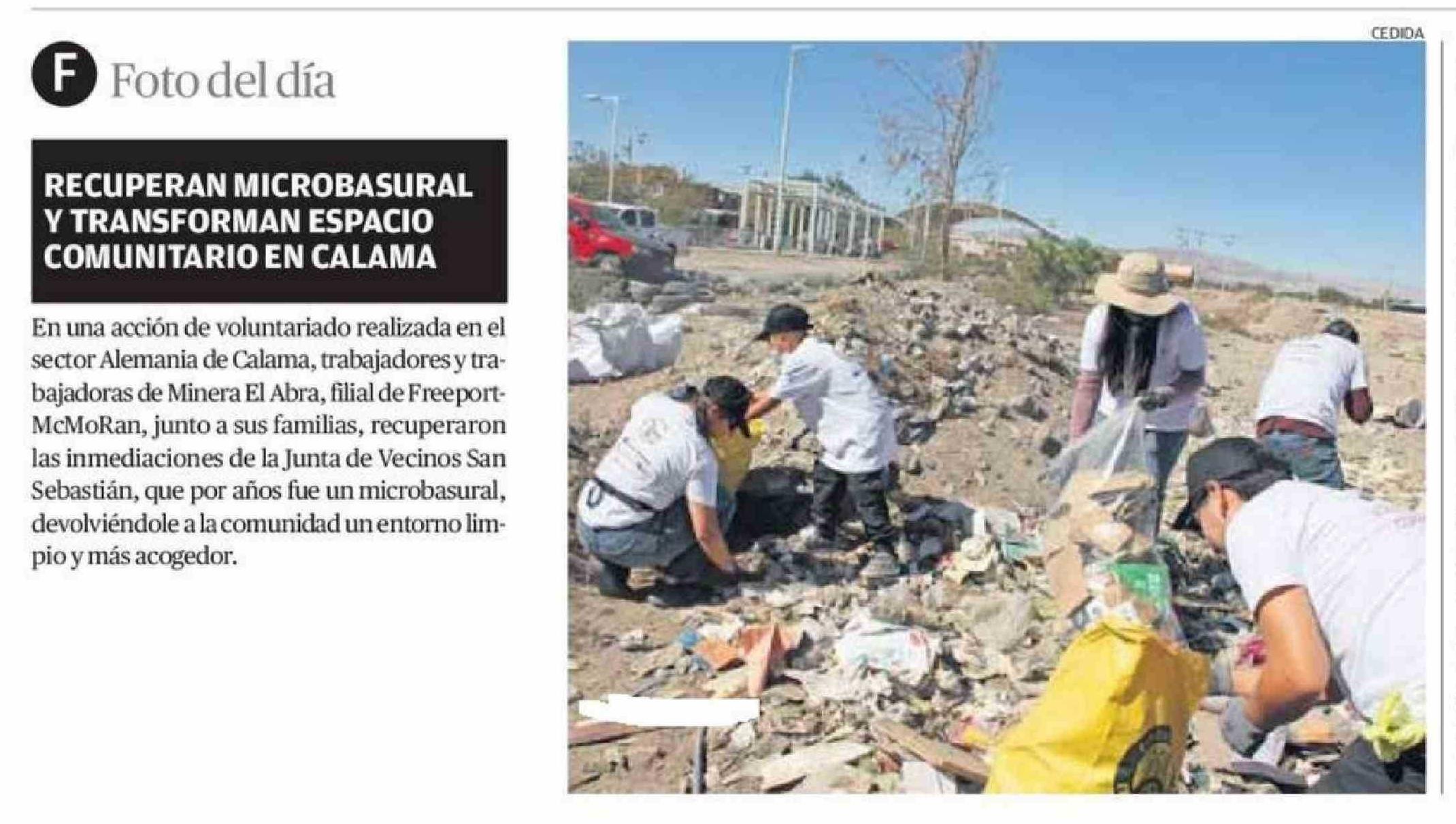 RECUPERAN MICROBASURAL Y TRANSFORMAN ESPACIO COMUNITARIO EN CALAMA 21-04-2026 El Mercurio de Calama |