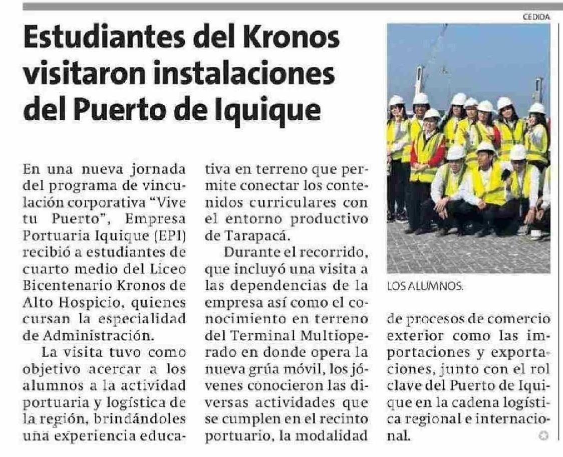 | Título: | Estudiantes del Kronos visitaron instalaciones del Puerto de Iquique |