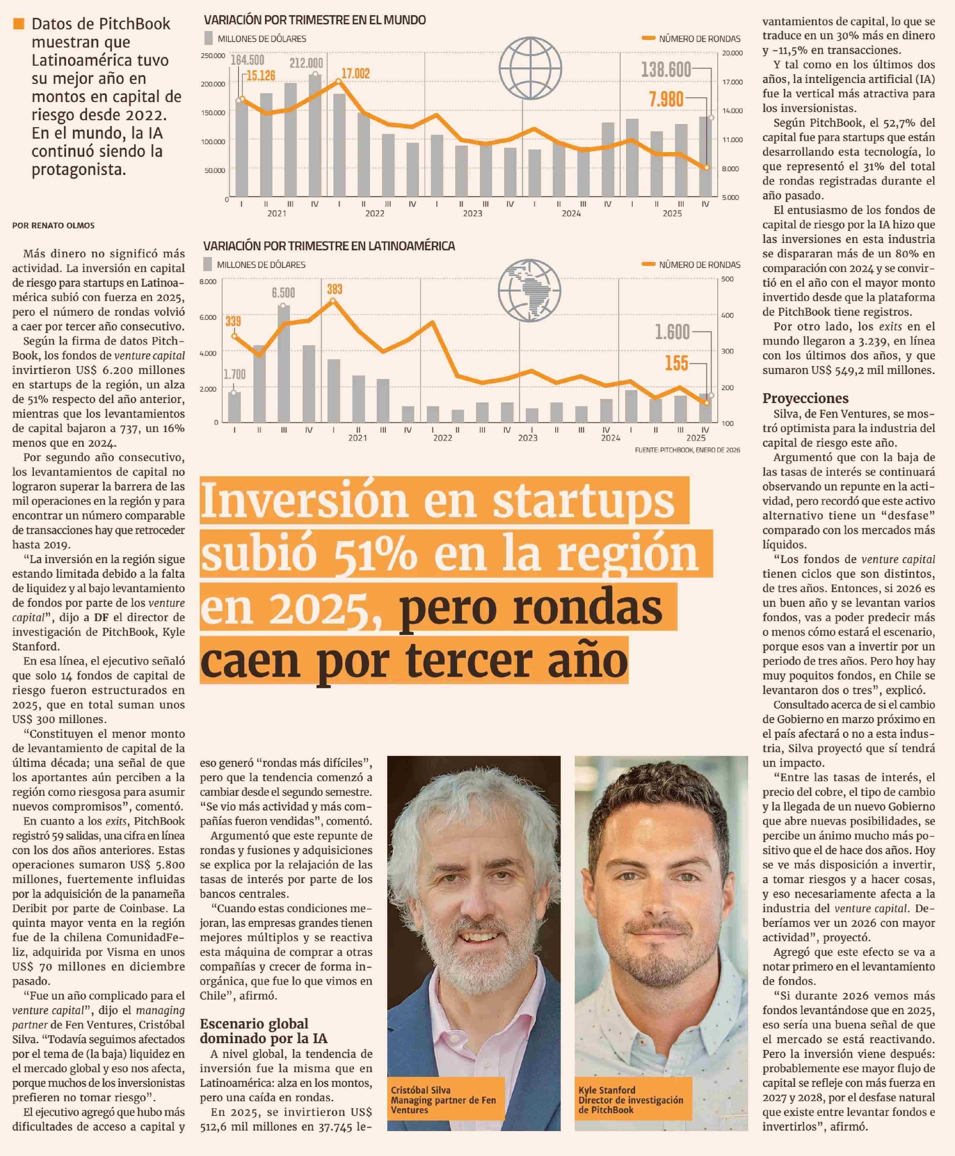 Inversión en startups subió 51% en la región en 2025, pero rondas caen por tercer año 26-01-2026 Diario Financiero |