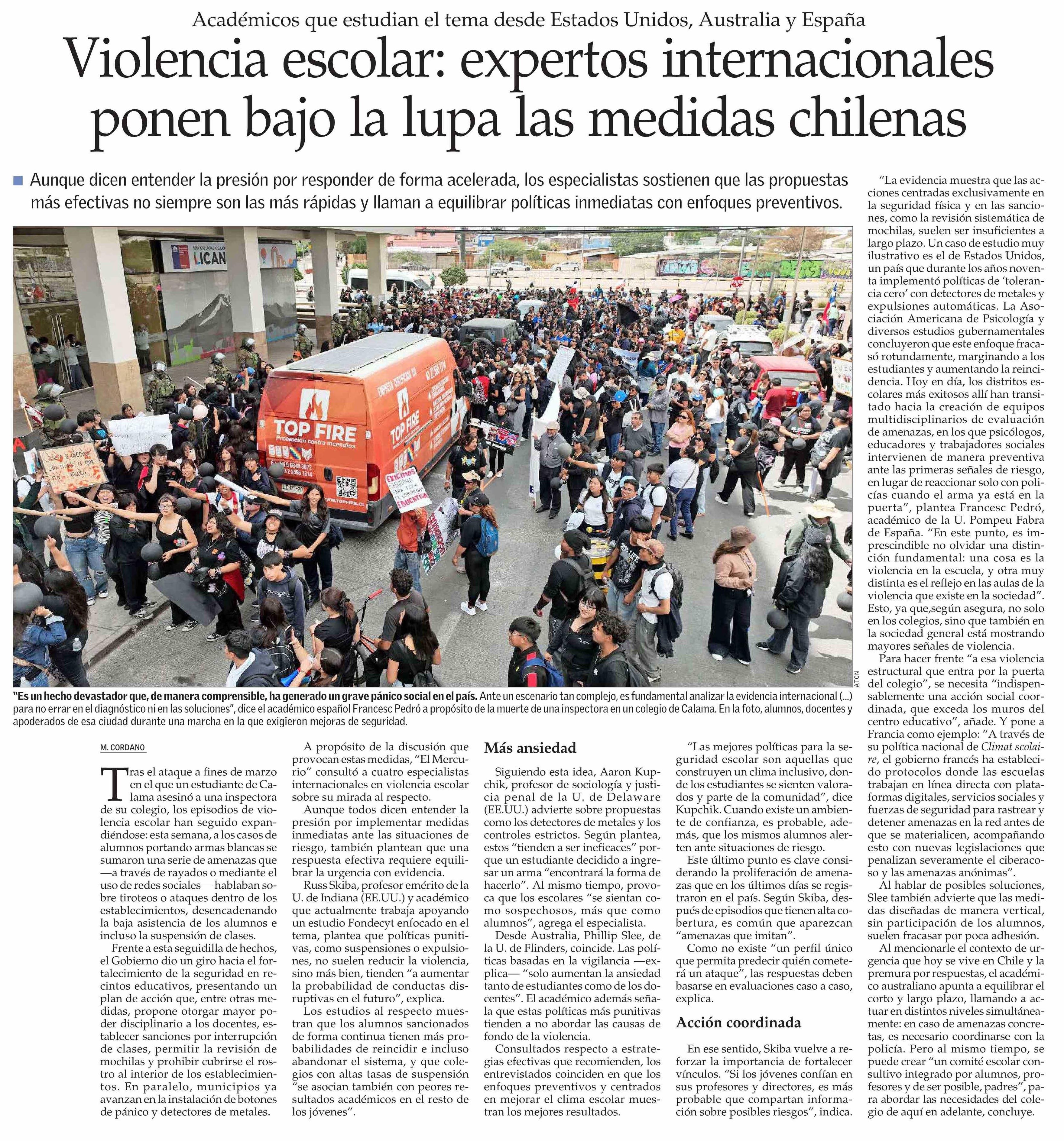 Título: Violencia escolar: expertos internacionales ponen bajo la lupa las medidas chilenas
