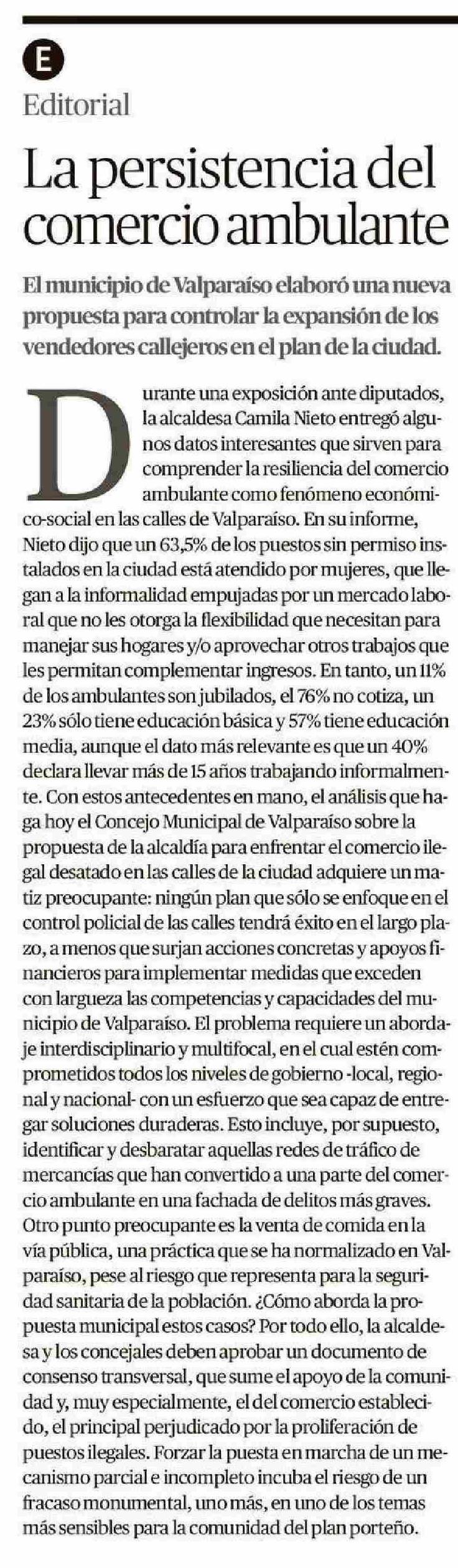 Editorial: La persistencia del comercio ambulante 20-05-2025 El Mercurio de Valparaíso |